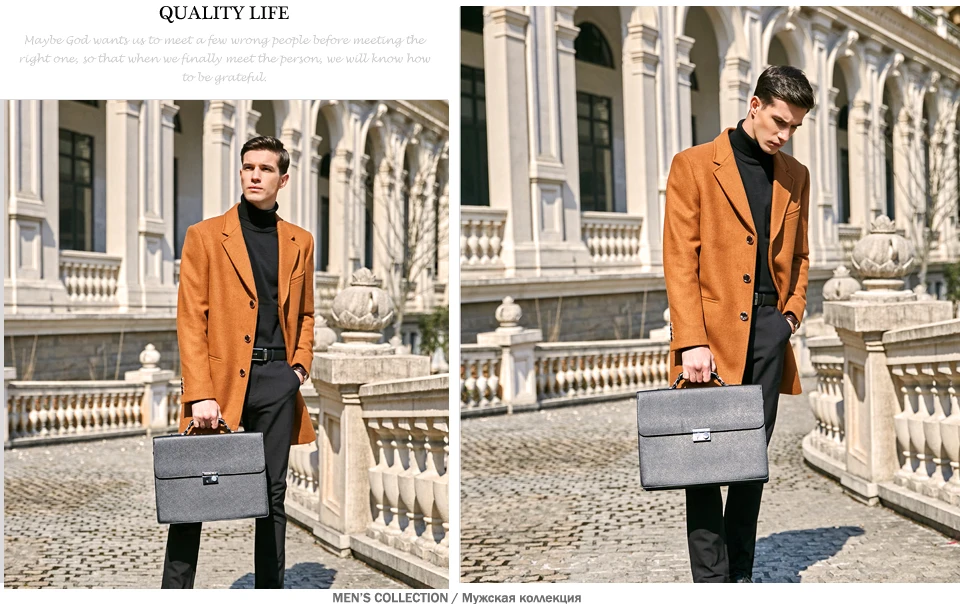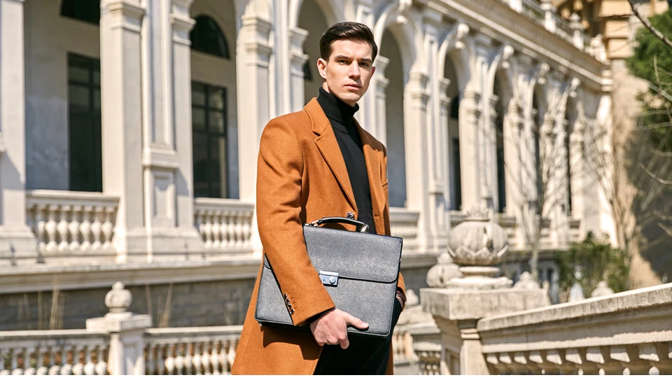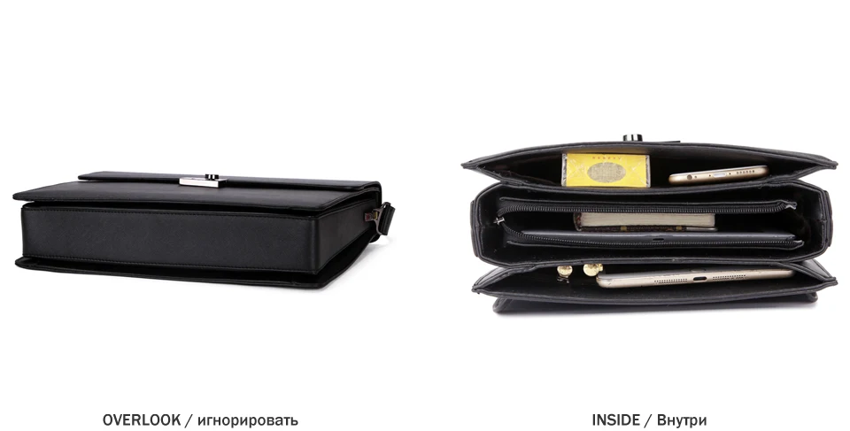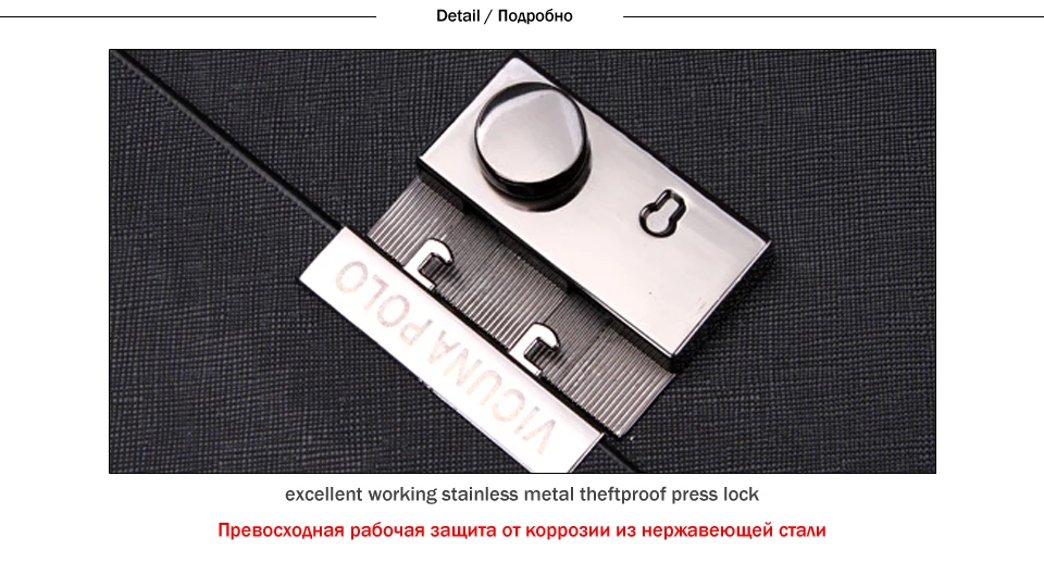 VICUNA POLO Business Man Bag Theftproof Lock Black Leather Briefcase For Man Solid Bank OL Mens Briefcase Bag Dress Man Handbag