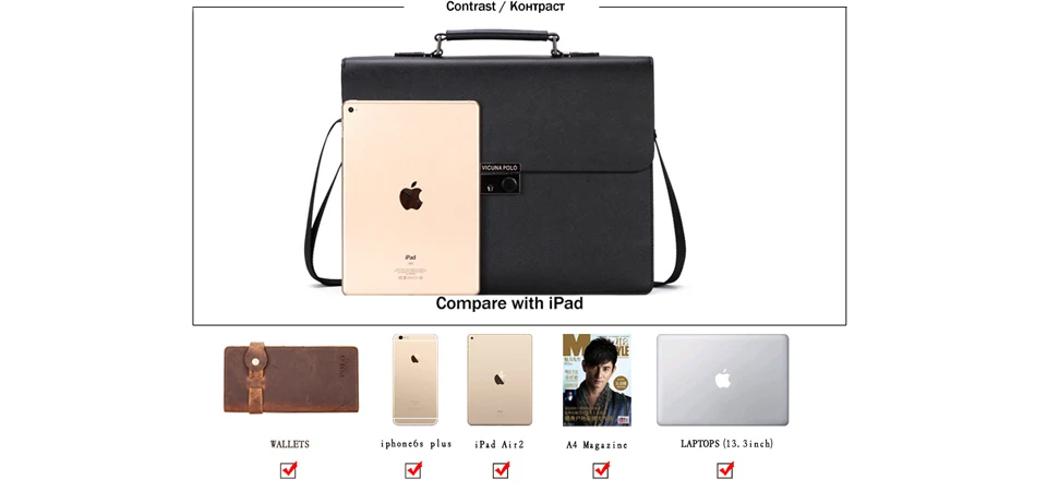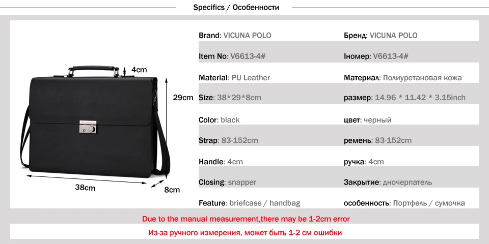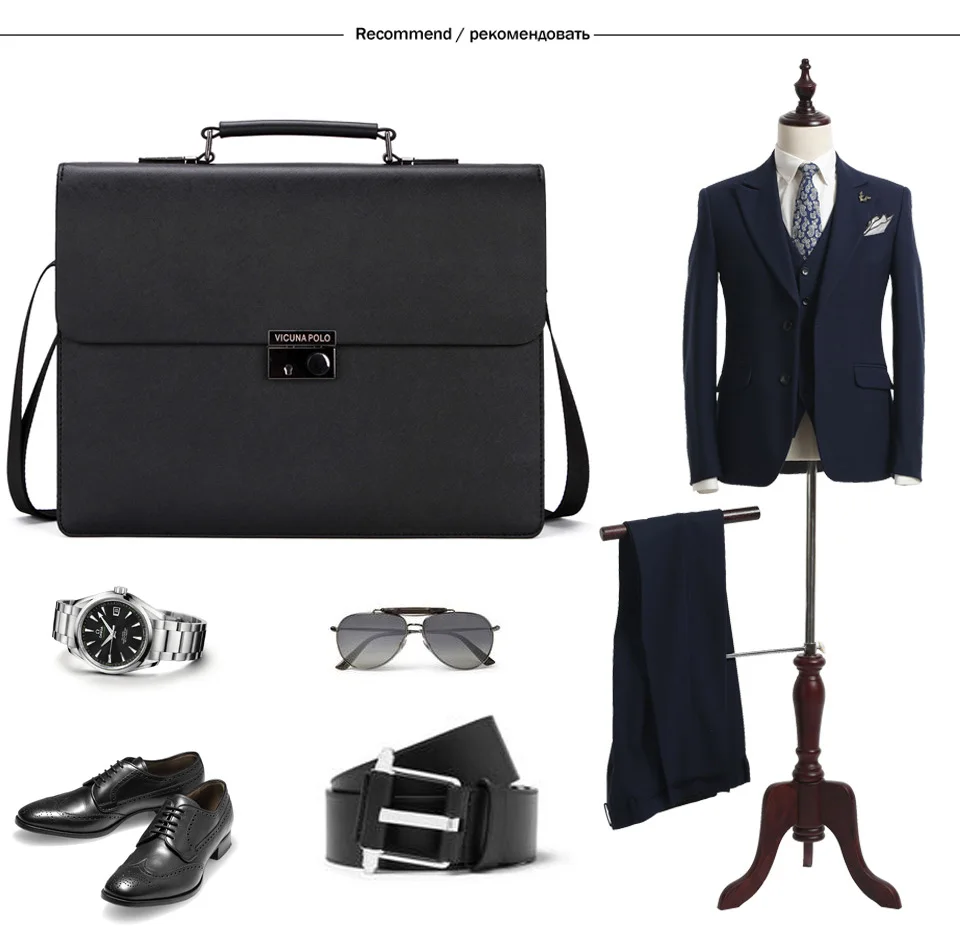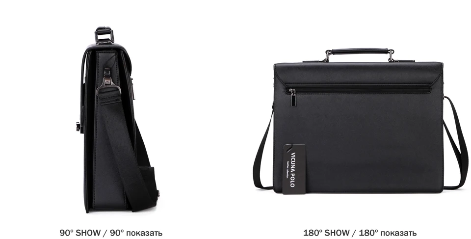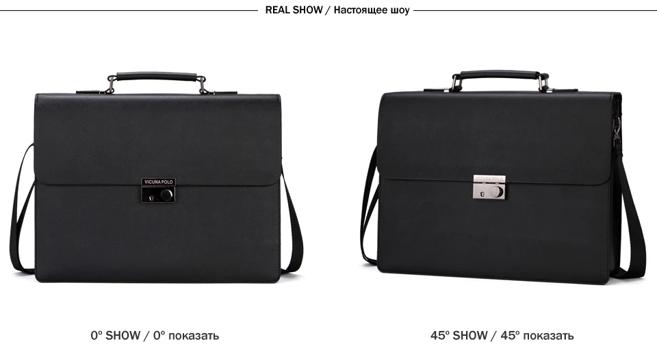 VICUNA POLO Business Man Bag Theftproof Lock Black Leather Briefcase For Man Solid Bank OL Mens Briefcase Bag Dress Man Handbag