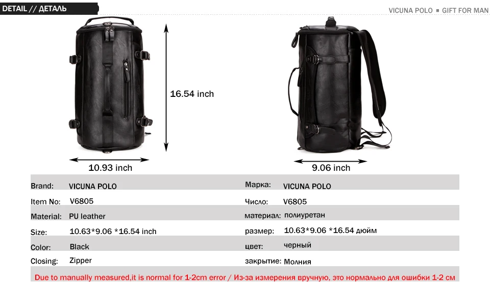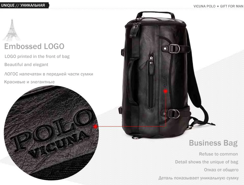 VICUNA POLO Famous Brand Bucket Shape Men Travel Backpack Fashion Large Men Travel Bag Multifunction Man Shoulder Duffel Bags