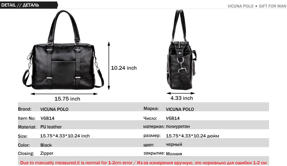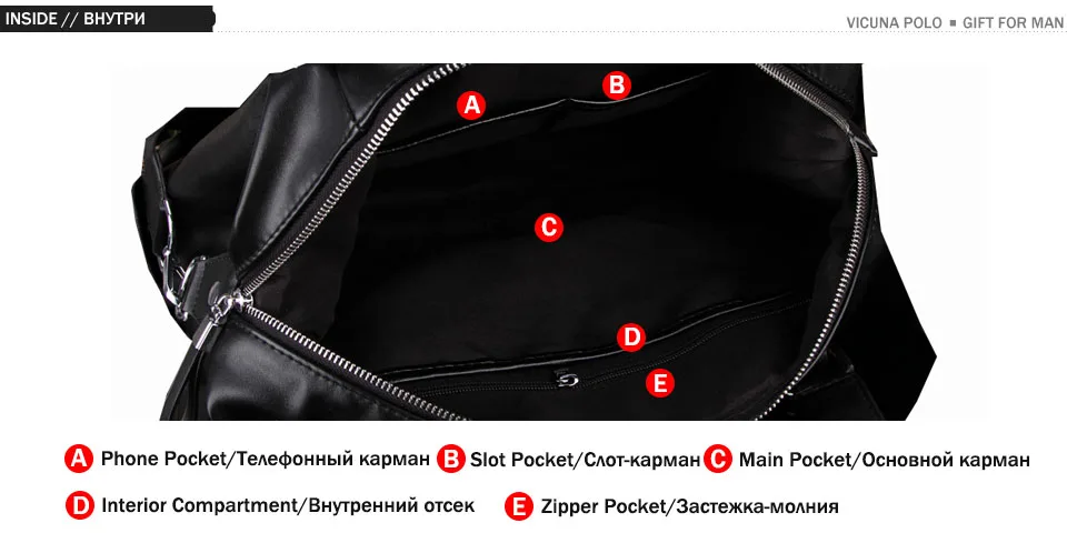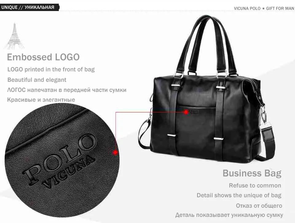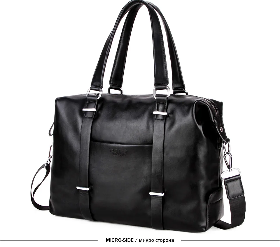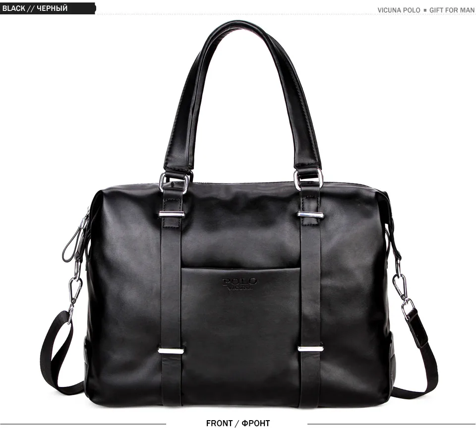 VICUNA POLO High Quality Men’s Business Travel Bag Men Casual Luggage Bags Black Leather Duffle Bag Simple Design Hand Luggage