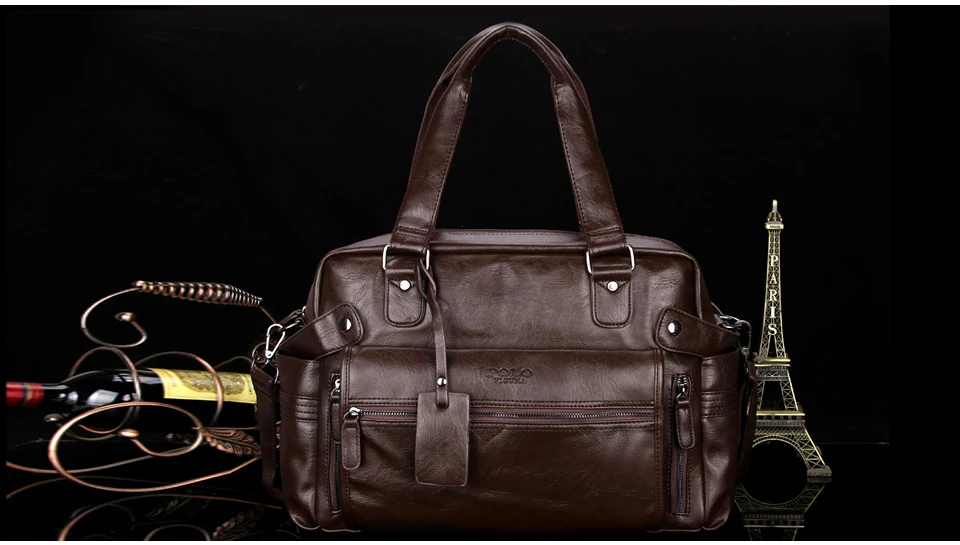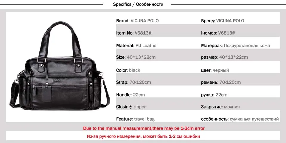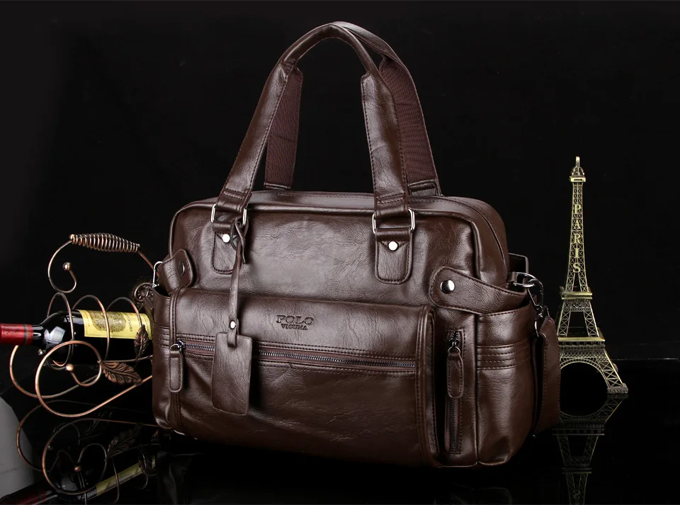 VICUNA POLO Large Capacity Men Leather Travel Bag Casual High Quality With Front Pocket Luggage Duffle Bag Handbag Shoulder Bag