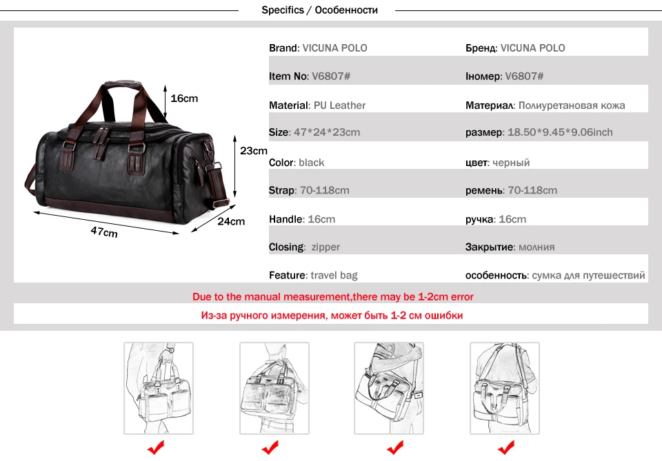 VICUNA POLO Large Capacity Men Travel Bags Simple Contrast Black Duffel Bag For Trip Casual Brand Traveling Bag For Male New