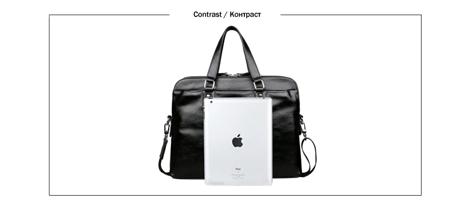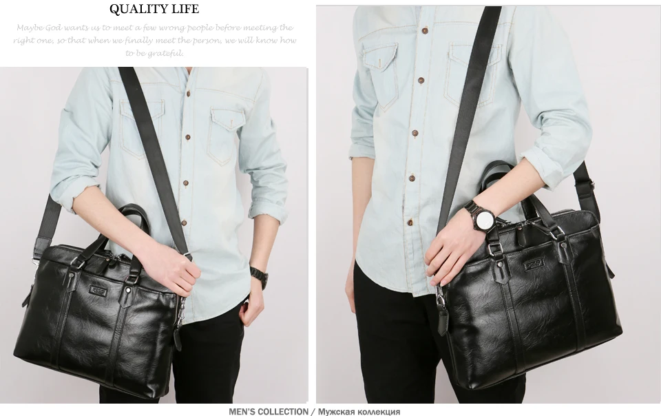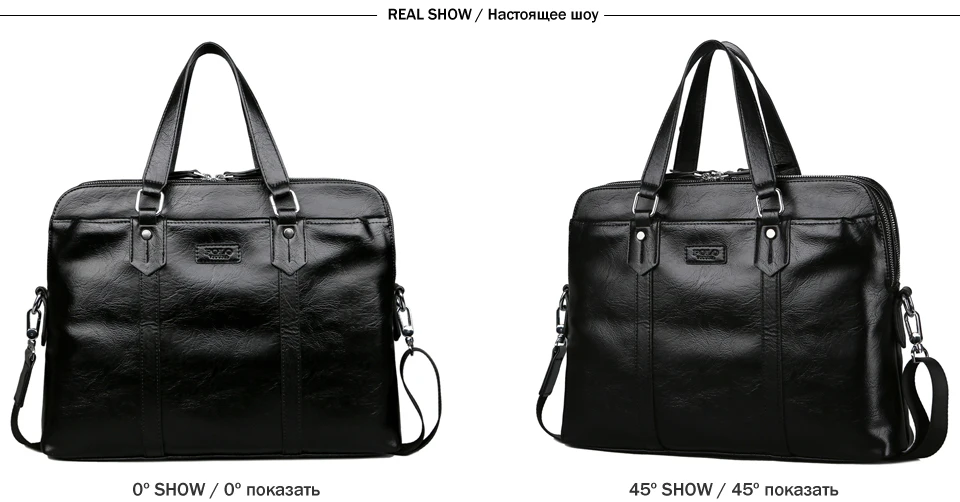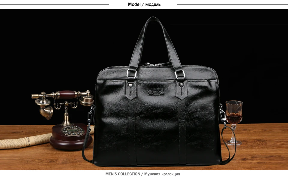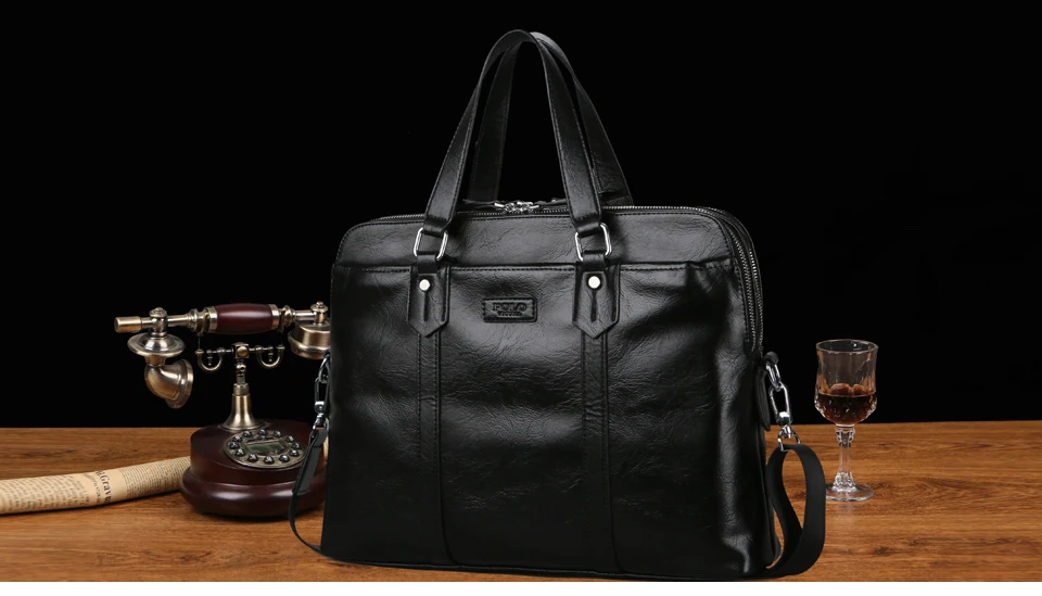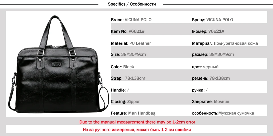 VICUNA POLO New Black Solid Soft Leather Man Laptop Handbag Double Pocket Business Men’s Briefcase Bag Fanous Brand Men Handbag