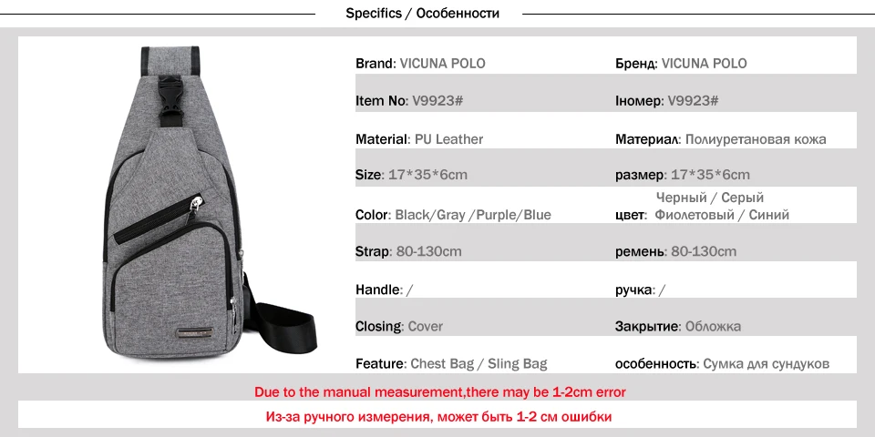 VICUNA POLO New Brand Canvas Unisex Messenger Bag Man Casual Chest Bag With Headphone Hole Anti-theft Travel Woman Sling Bag