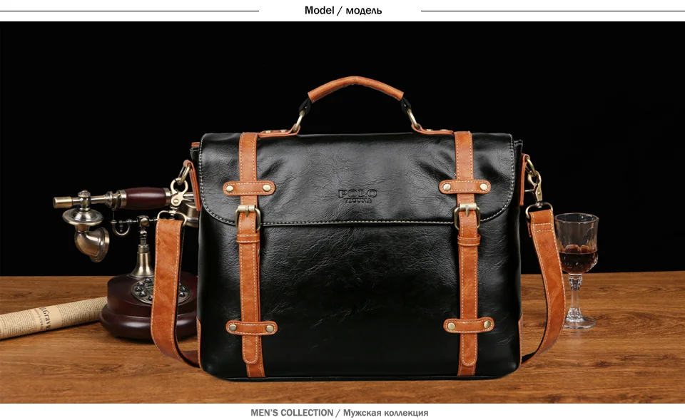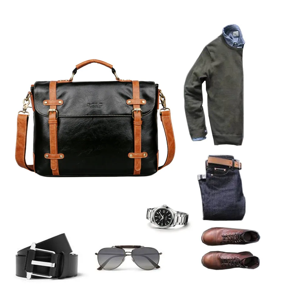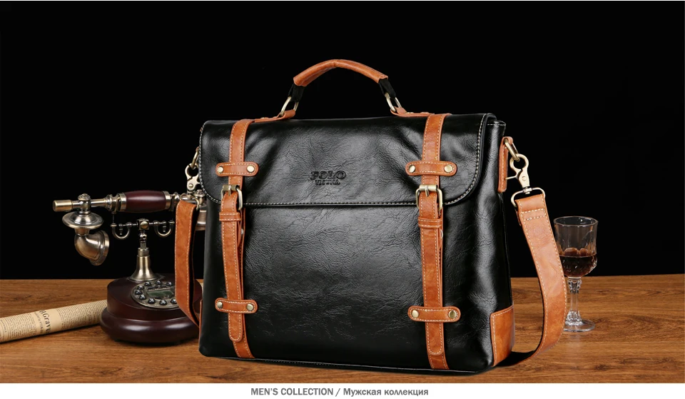 VICUNA POLO New Contrast Color High Quality Man Leather Handbag Travel Vintage Laptop Bags Men Briefcase Men’s Business Handbag