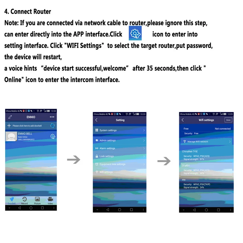 5. One mobile device can support max to 4 WIFI doorbells.
