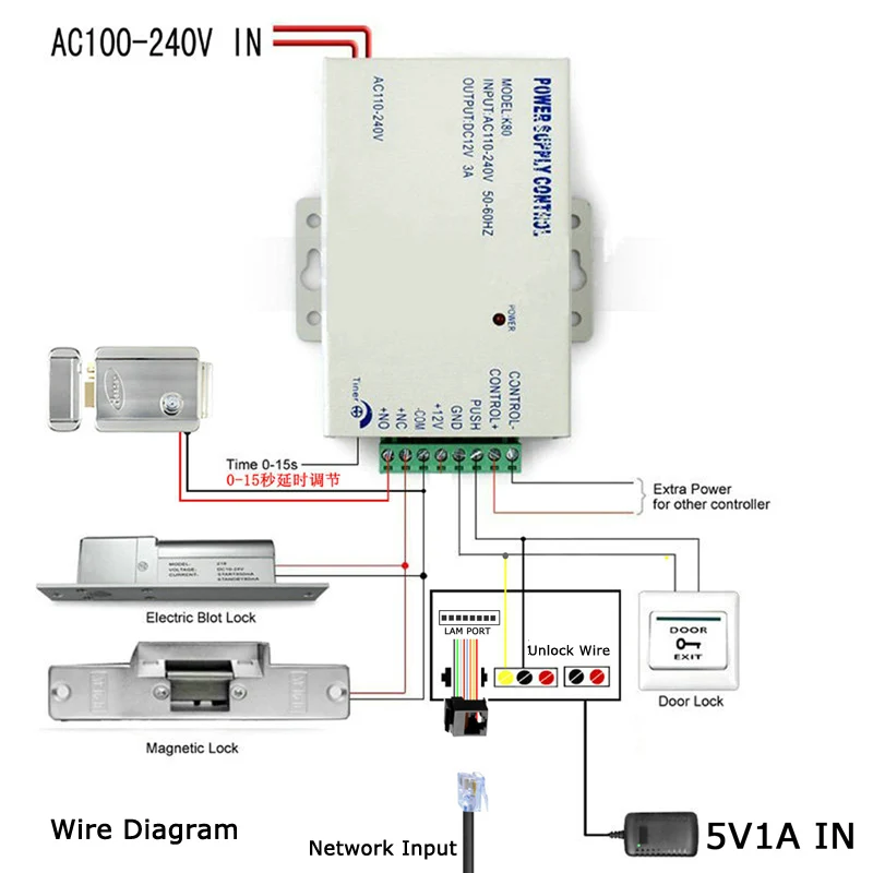 3. With unlock function, can connect to access control power supply.