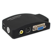 This adapter box is VGA/S-video/AV to VGA converter switch. It has VGA, S-video and AV input with VGA output, by which it enable the video in DVD/DVR, CCTV (closed-circuit television), camera, etc to be displayed on PC monitor or LCD. Single button for easy switch between different input source.