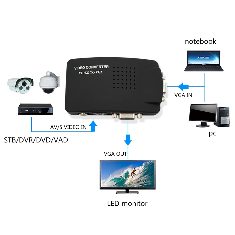2.Convert VGA/S-video/AV to VGA