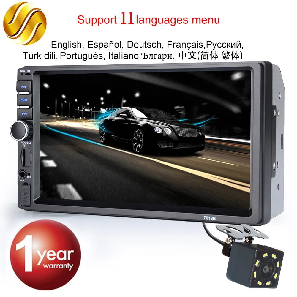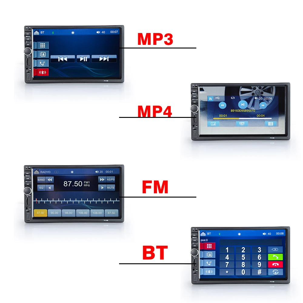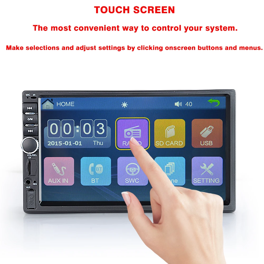 Car Radio HD 7″ Touch Screen Stereo 2 Din Bluetooth FM ISO Power SD USB Aux Input Mp5 Player No or With Camera