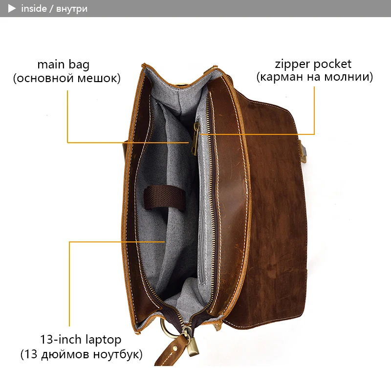 1 main pocket with metal buckles +1 interior laptop slot pocket +1 interior zipper pocket+1 front pocket with metal buckle