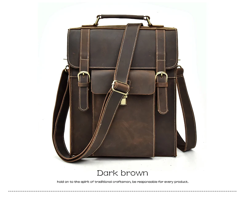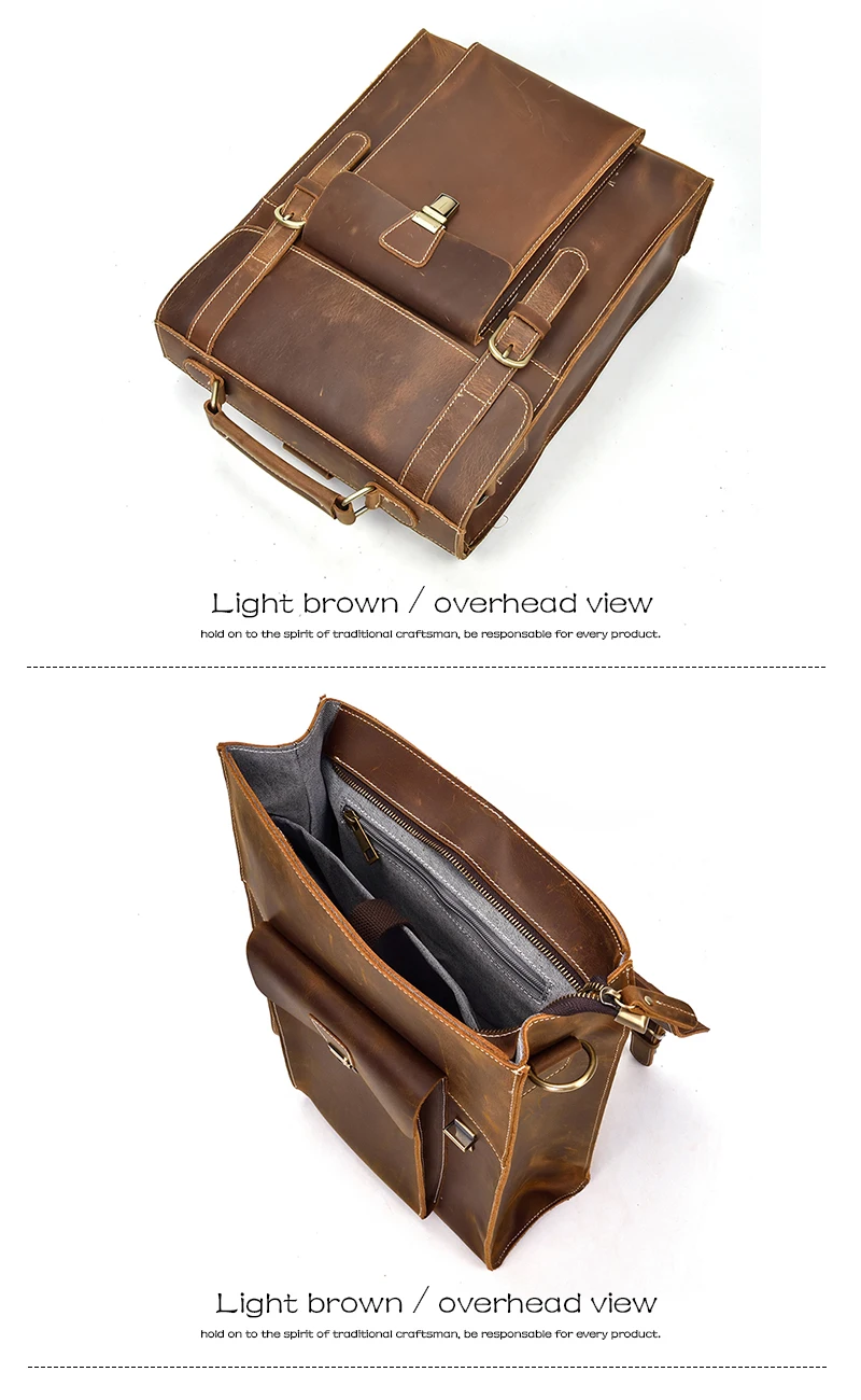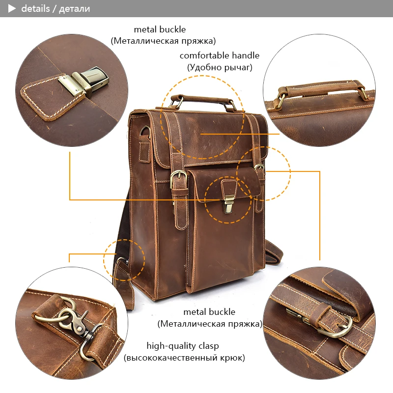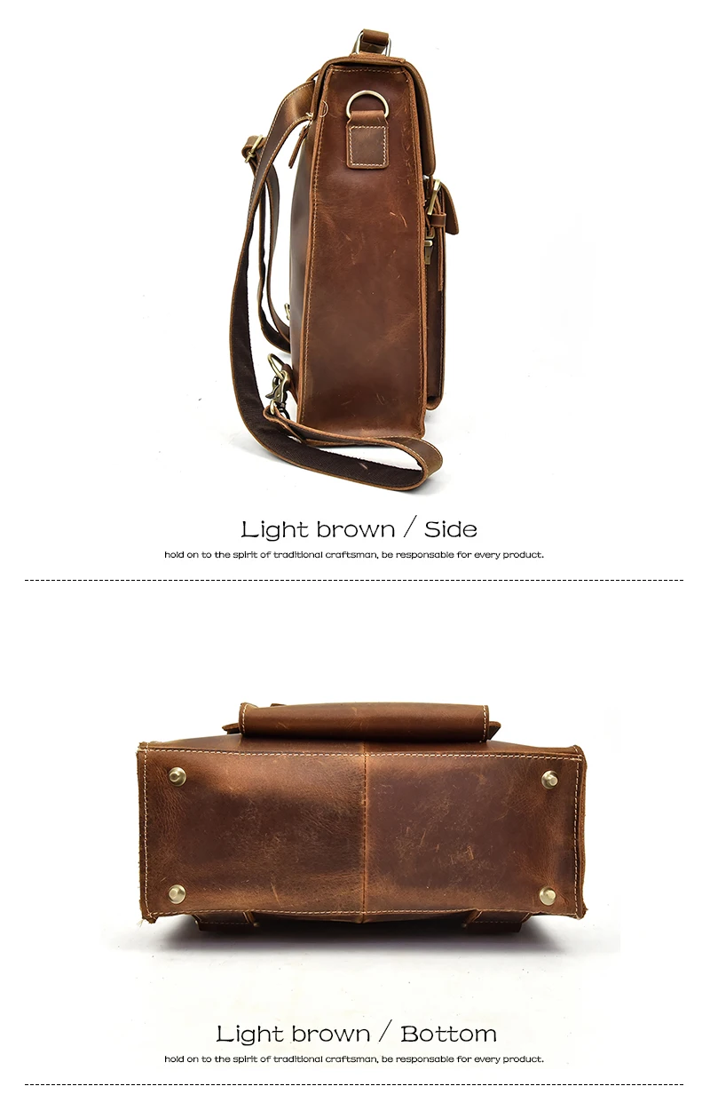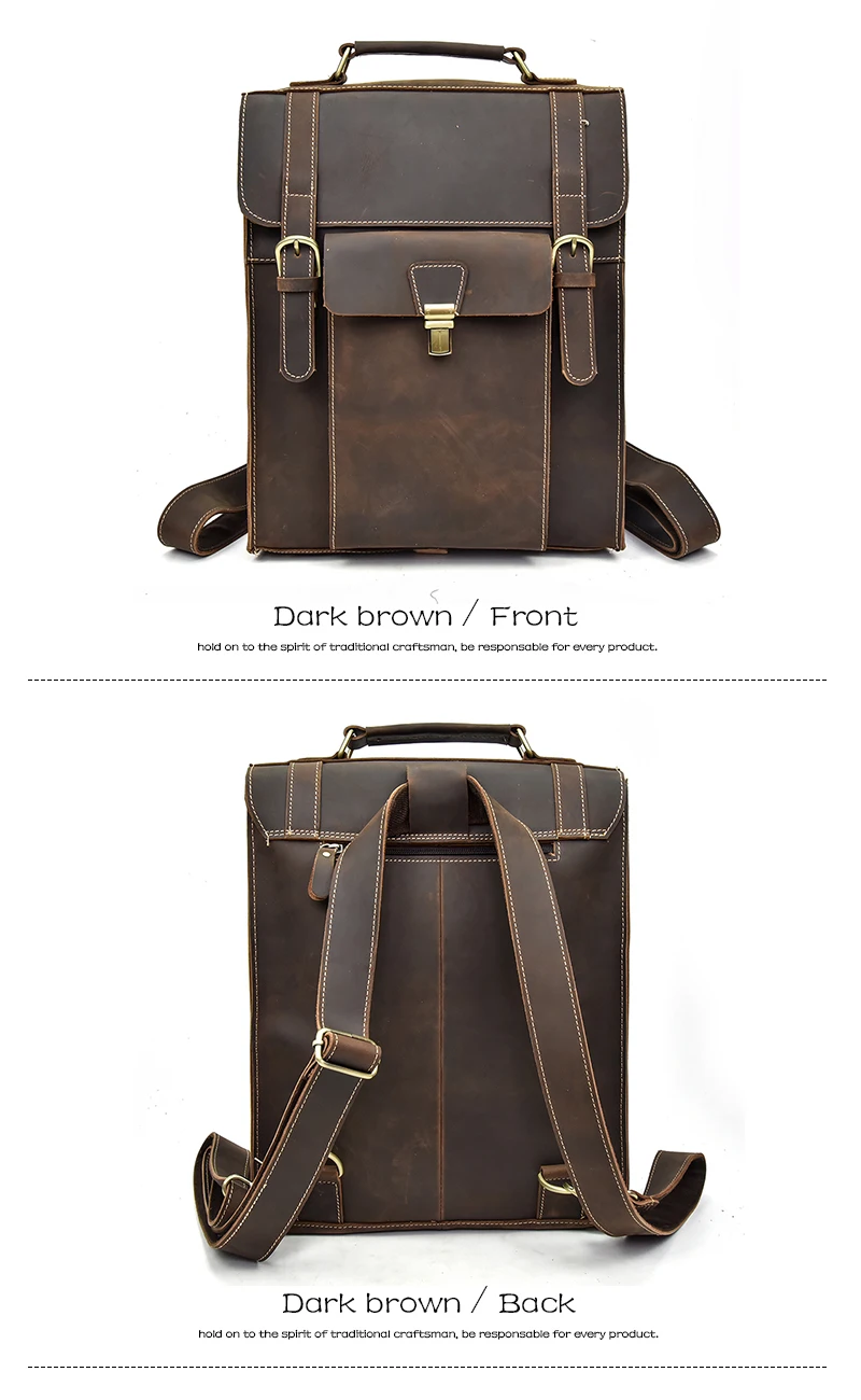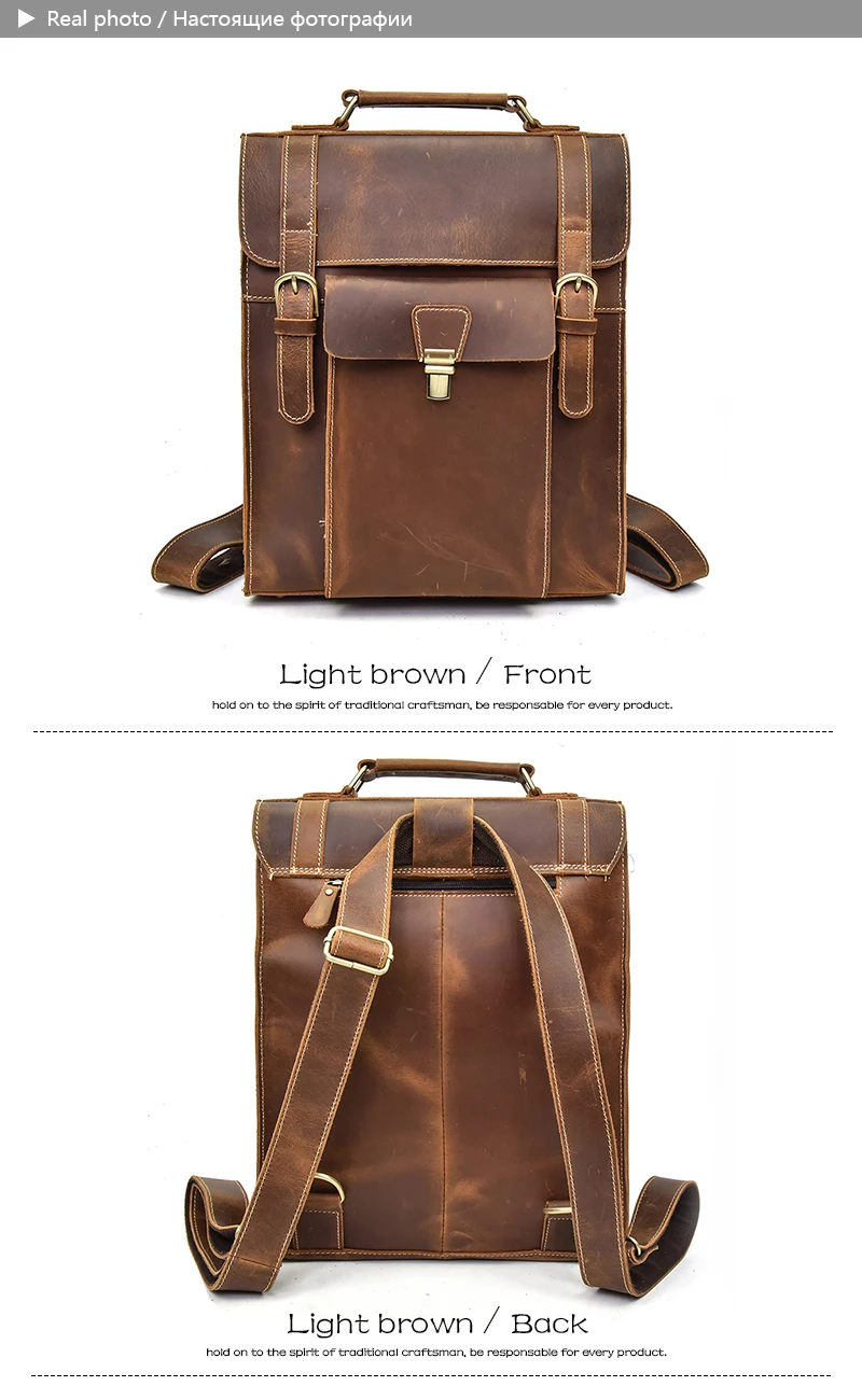 Vintage Cow Leather Backpack for Men Crazy Horse Leather Daypack Large Capacity Travel Tote Bag 14″ Laptop 3 Use Shoulder Bag