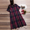 Vintage Summer Dress Women Plaid Long Top Female Elegant Short Sleeve Shirt Dresses Beach Sarafans Vestido Robe Plus Size 5XL