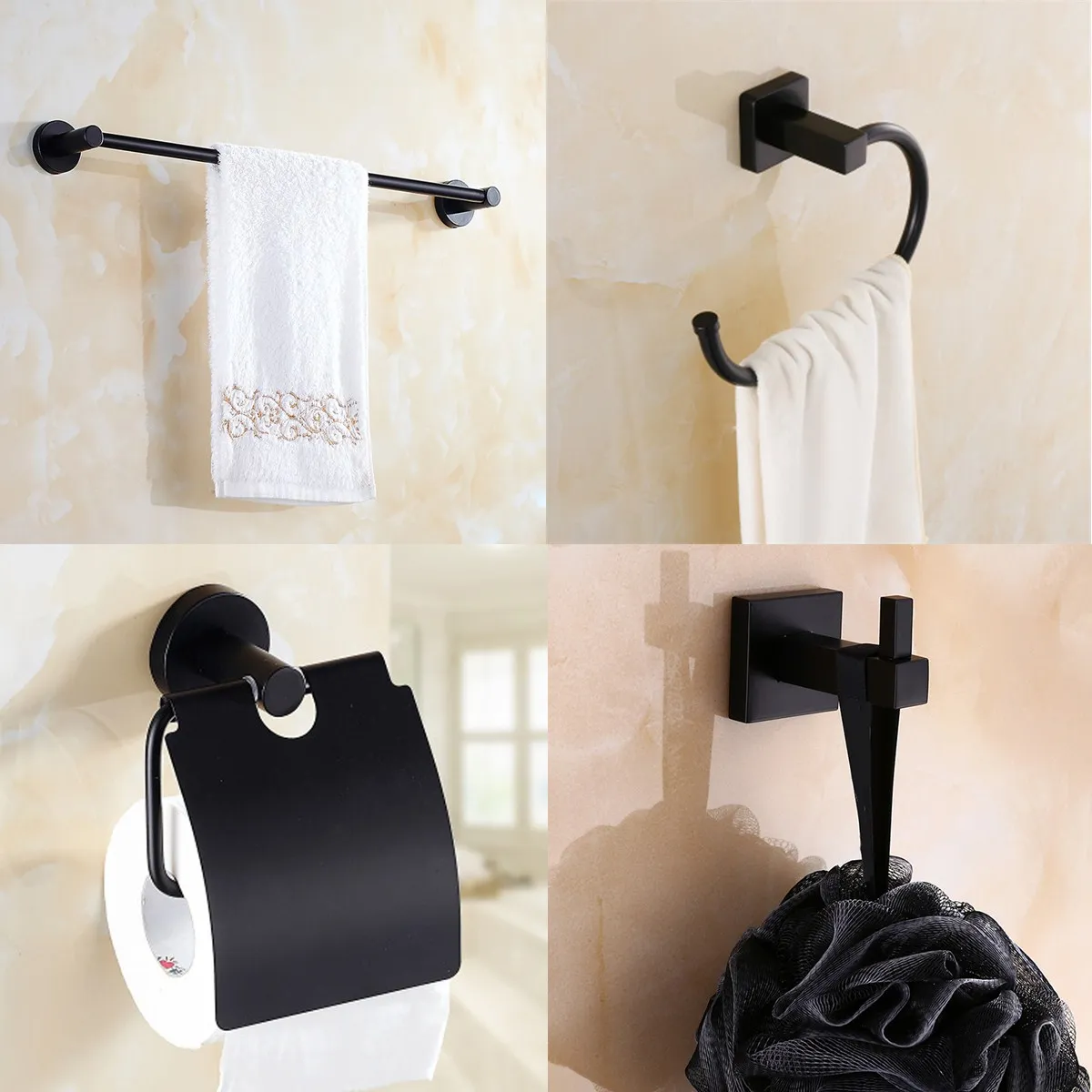 Vintage Wall Mounted Black Paint Paper Towel Space Aluminum Toilet Paper Holder Bathroom Kitchen Wash Room Tissue Cover