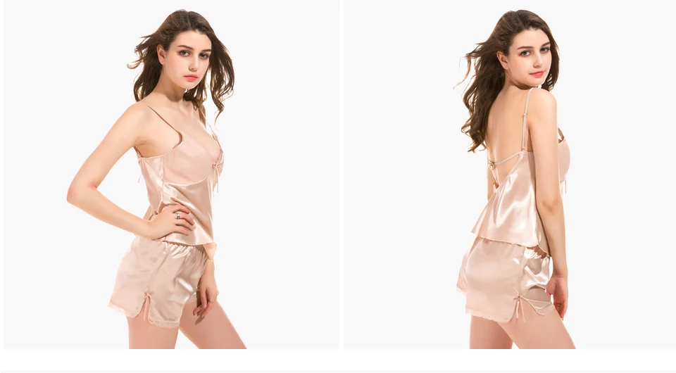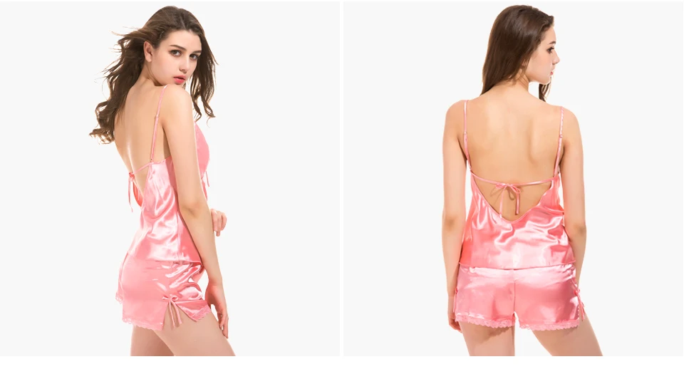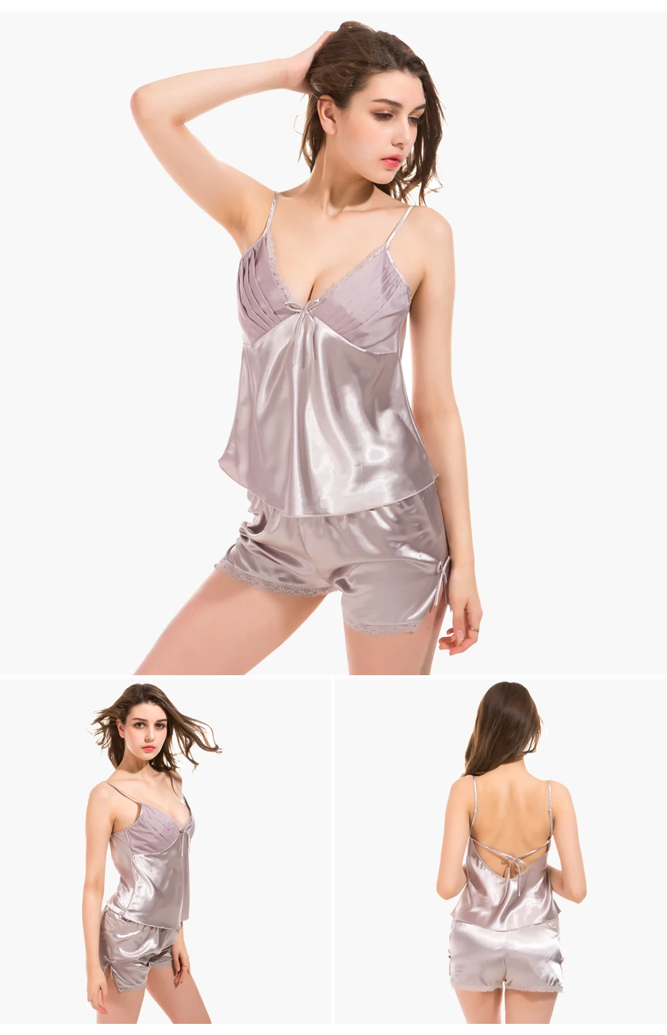 Vislivin 2017 two pieces women’s pajamas set spaghetti strap nightwear tops + short pants sleep wear sexy sleeveless sleep suits