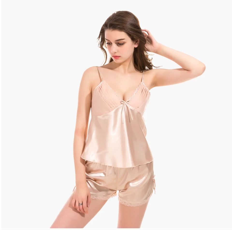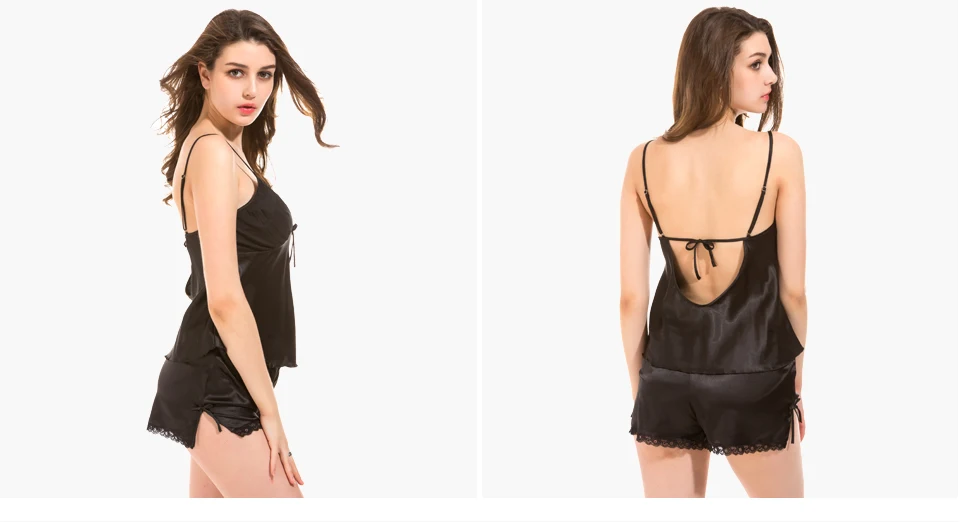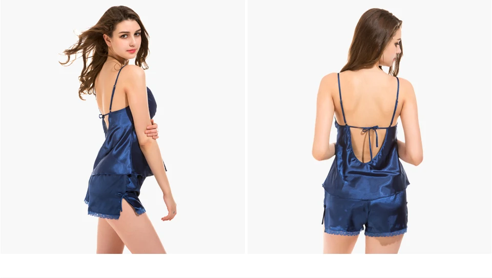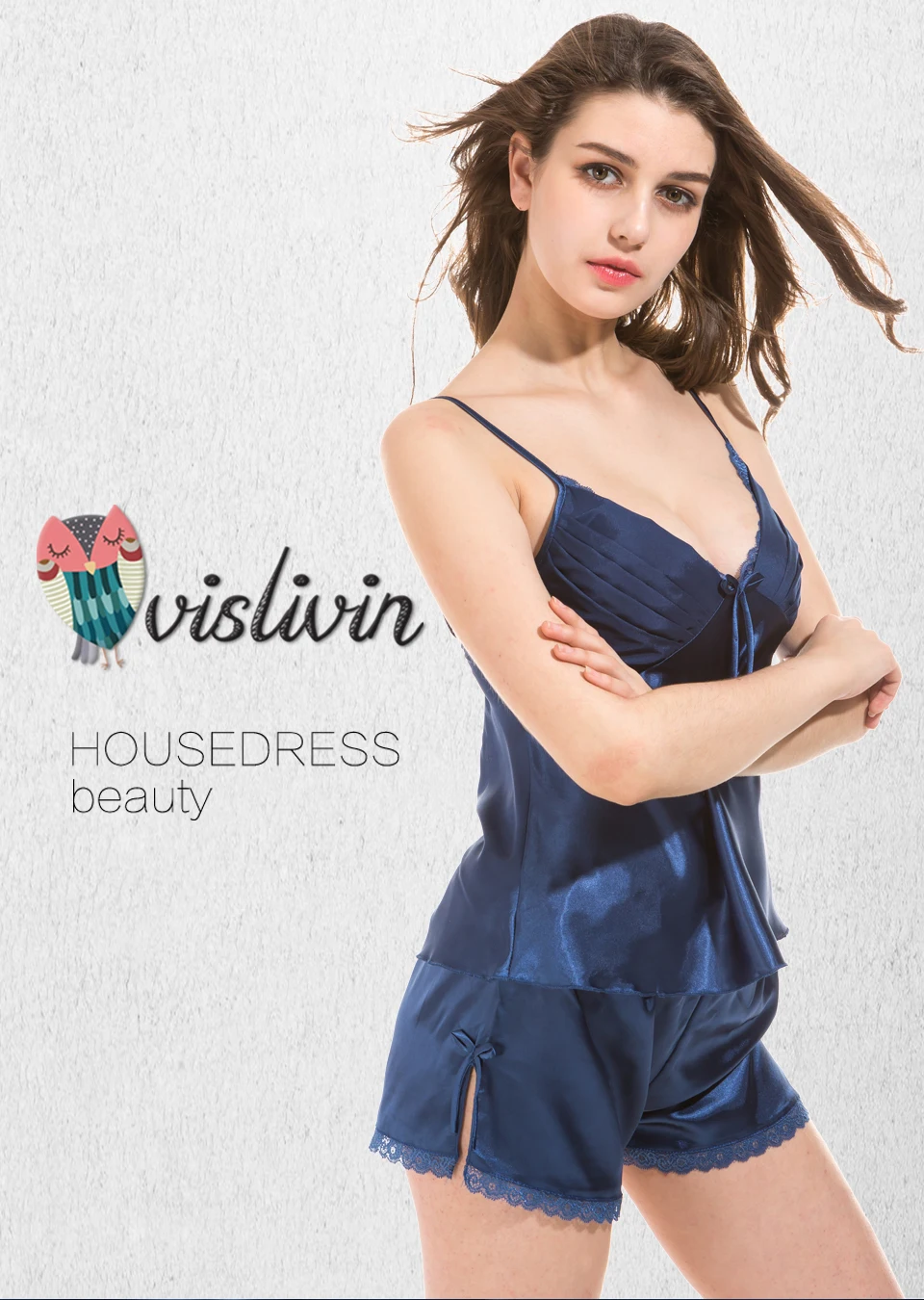 Vislivin 2017 two pieces women’s pajamas set spaghetti strap nightwear tops + short pants sleep wear sexy sleeveless sleep suits