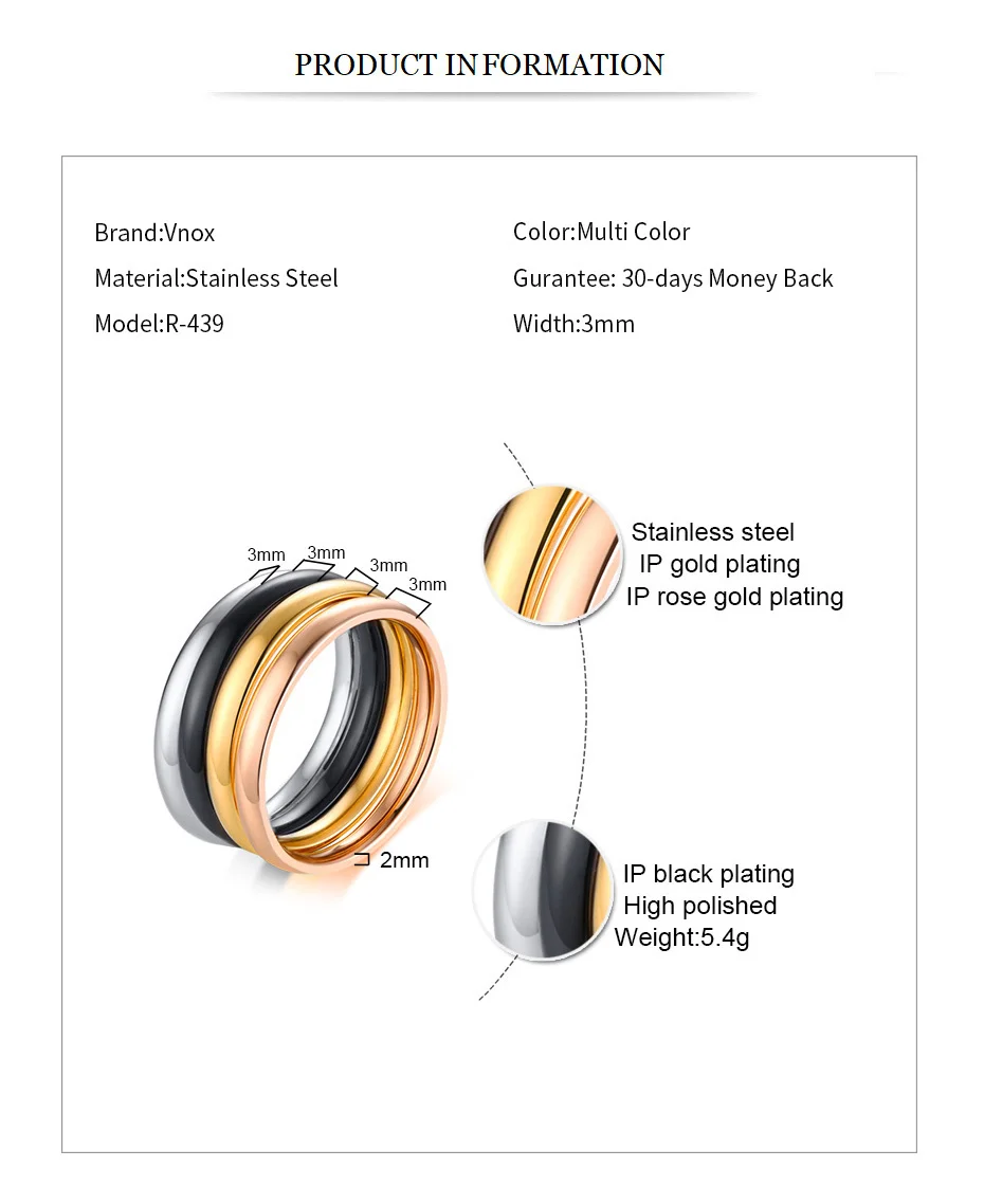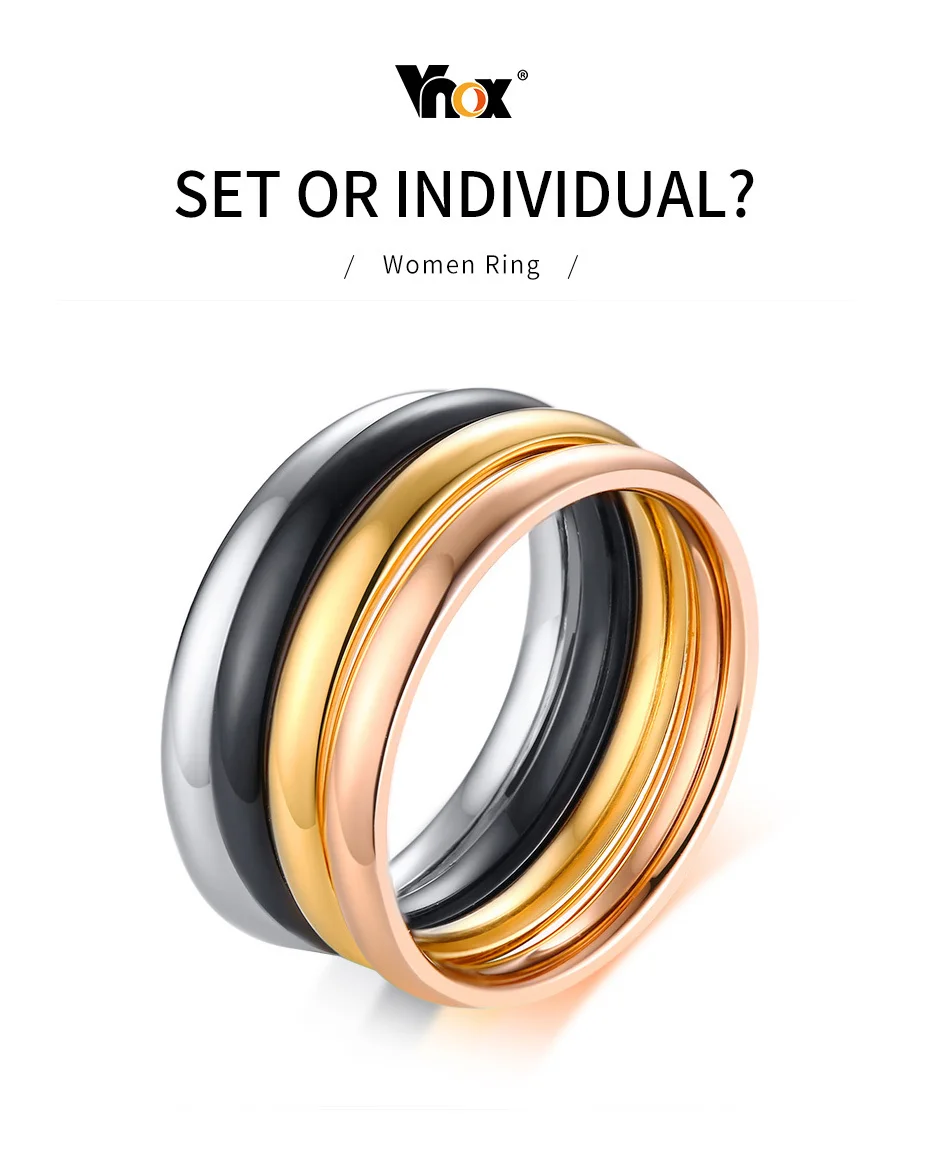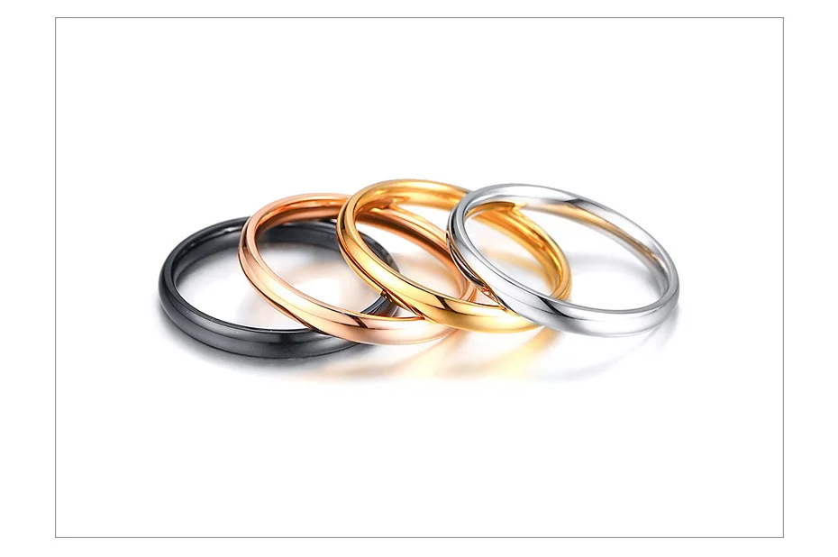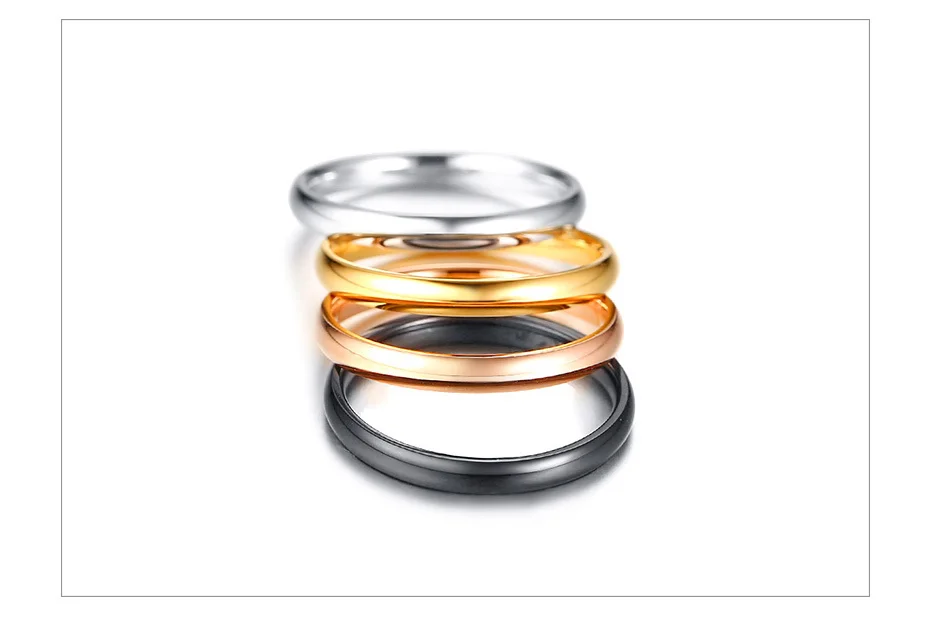 Vnox 4pcs/ Set Women Rings 3mm Elegant Thin Stainless Steel Classic Finger Ring Street Wear Alliance Anel US Size #6 – #9