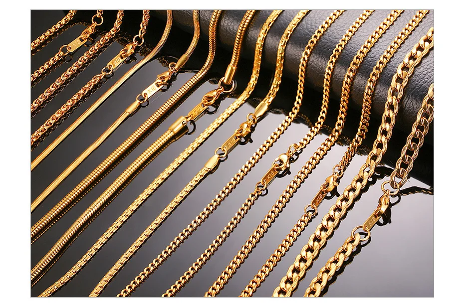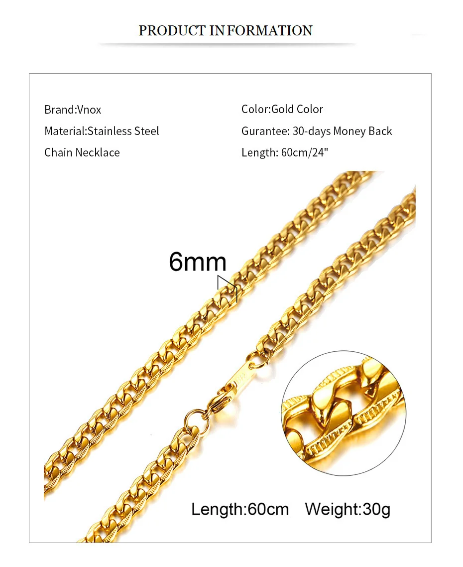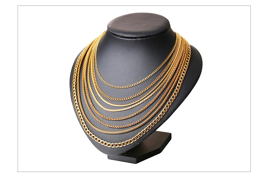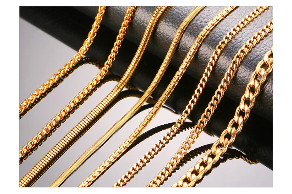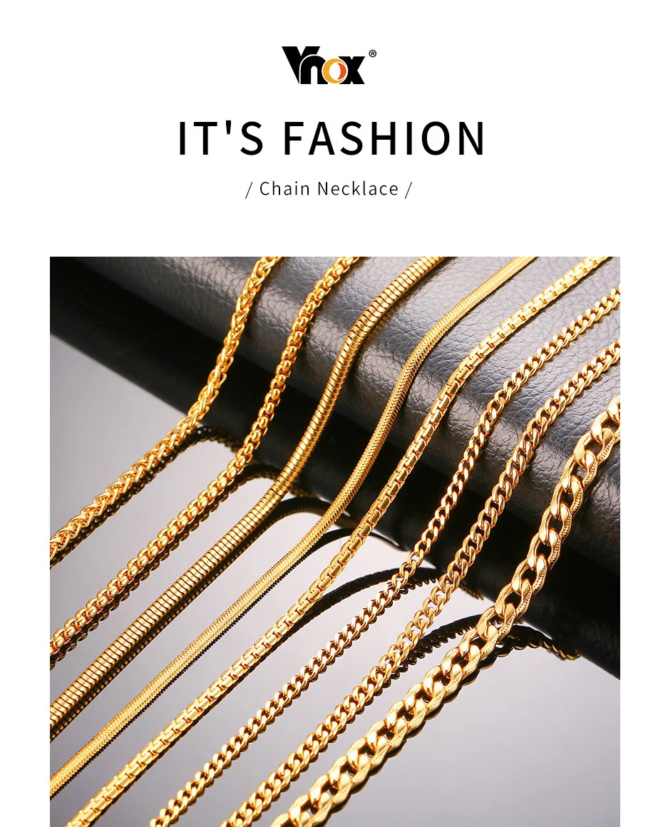 Vnox Men Women Necklace Gold Tone Snake Miami Cuba Wheat Spiga Paima Link Round Box Curb Chains Stainless Steel Choker w/ K 18