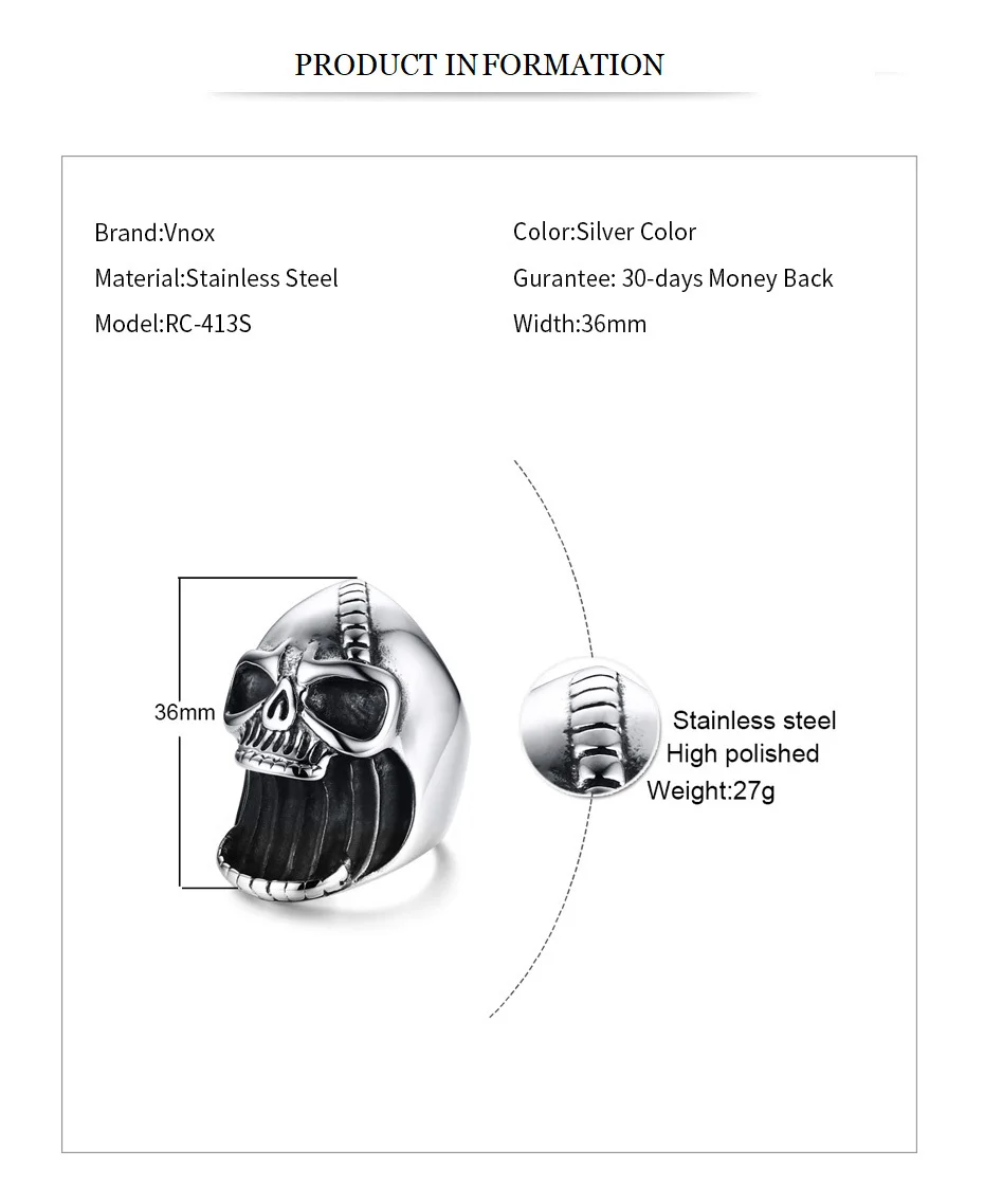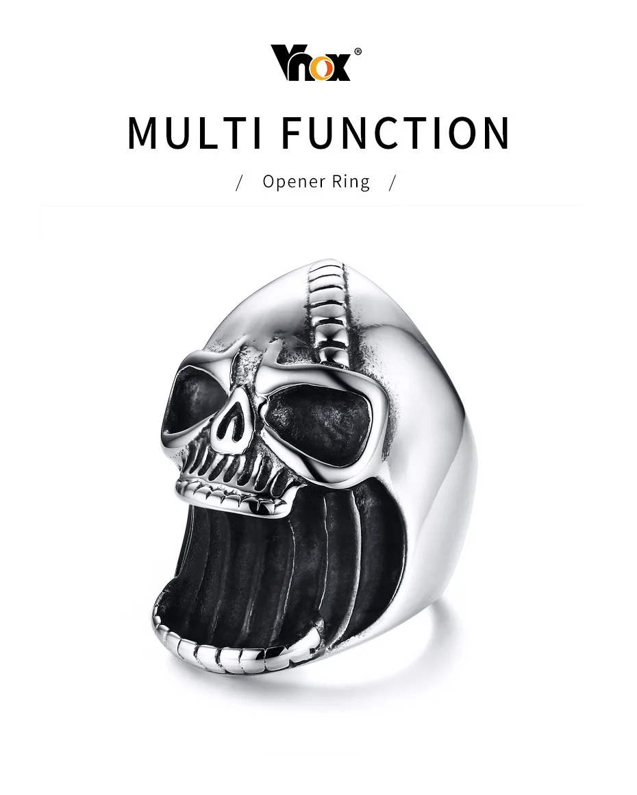 Vnox Multi Function Skull Ring for Men Bottle Opener Stainless Steel Skeleton Gothic Biker Punk Vintage Scar Jaw Male Alliance