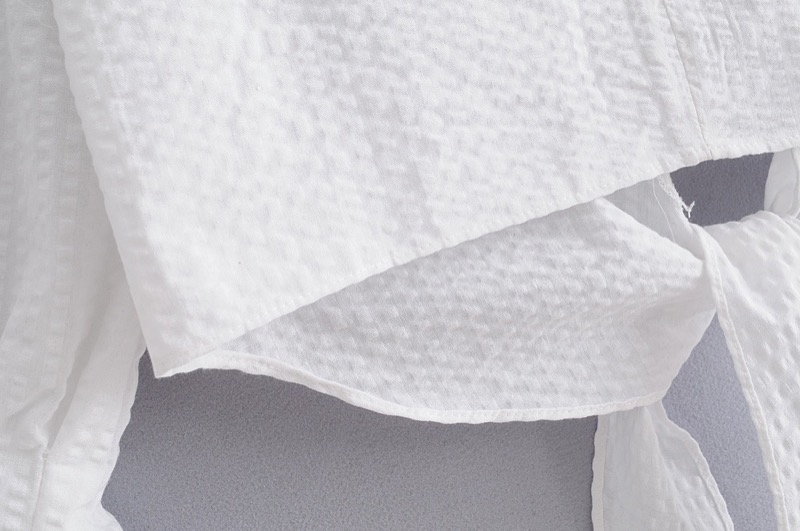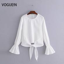 VOGUEIN New Womens O-Neck White Long Flare Sleeve Bow Short Blouse Shirt Top Wholesale