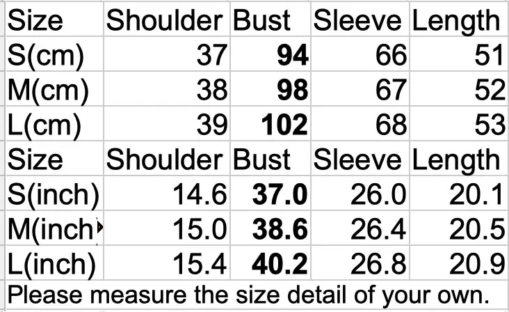 This is Asian size, please ignore the size tag, do not simply choose it by XS/S/M/L/XL, please look at the detailed measurement in size chart and compare with your body size or the size detail of your own clothing to choose the right size. Thank you.