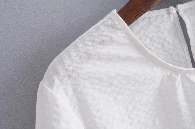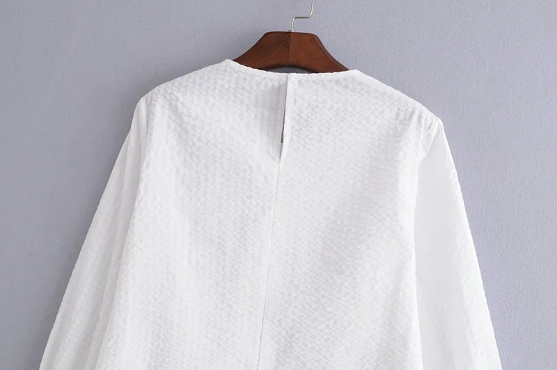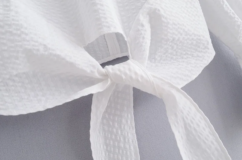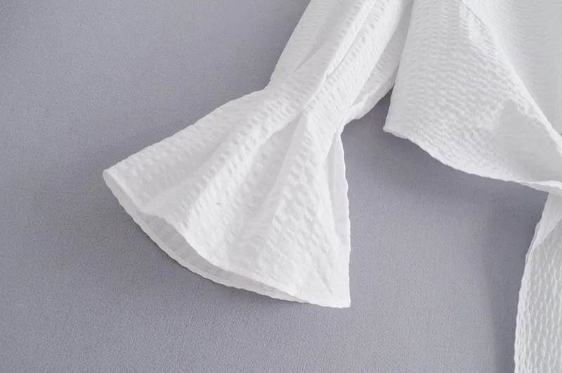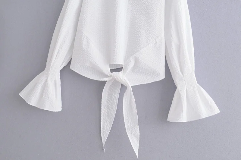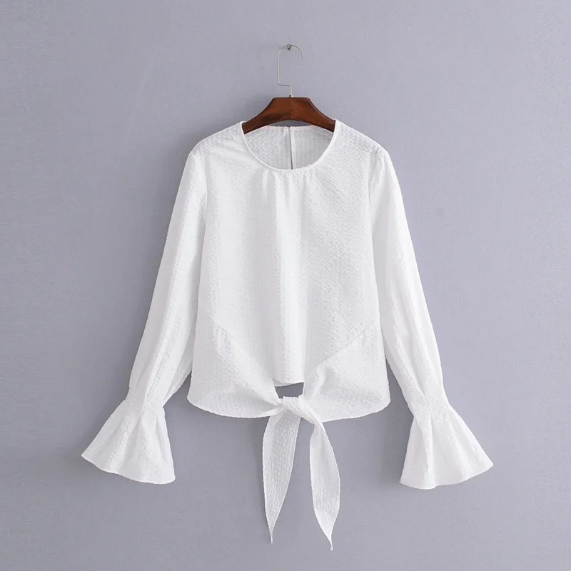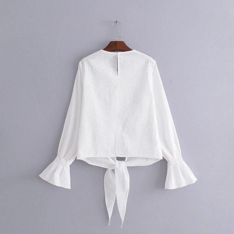 VOGUEIN New Womens O-Neck White Long Flare Sleeve Bow Short Blouse Shirt Top Wholesale