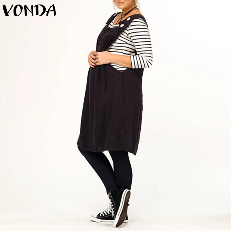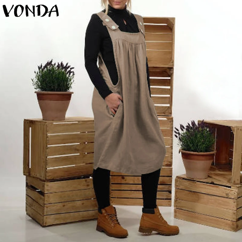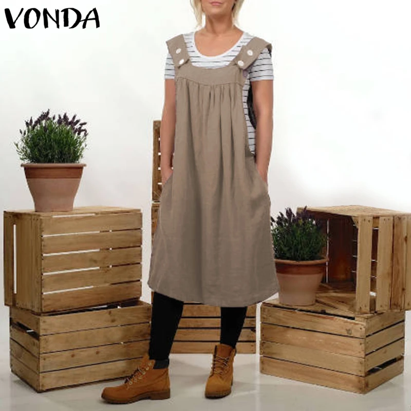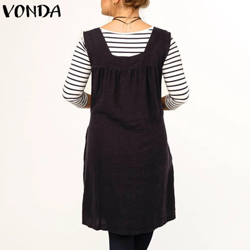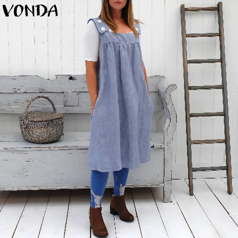 VONDA Women Casual Loose Dress 2018 Summer Cotton Sexy Square Collar Sleeveless Backless Mid-calf Vestidos Plus Size Clothes 5XL