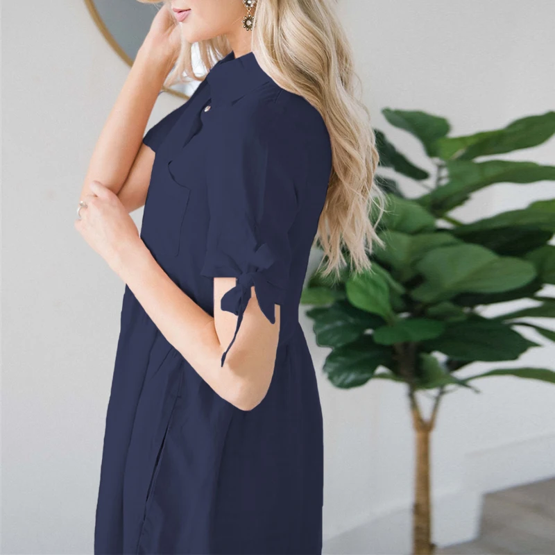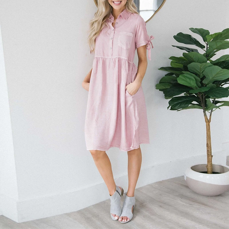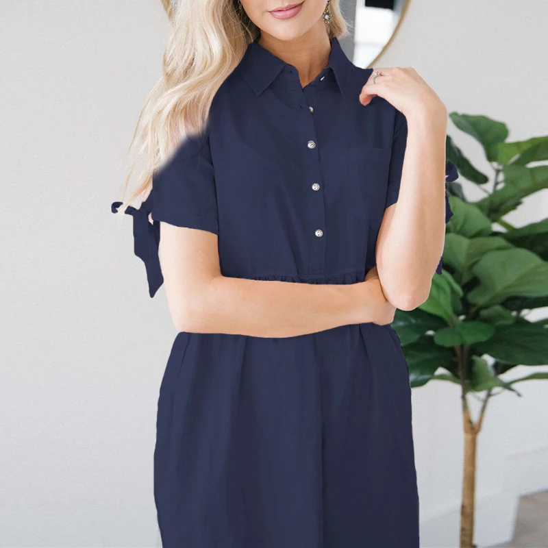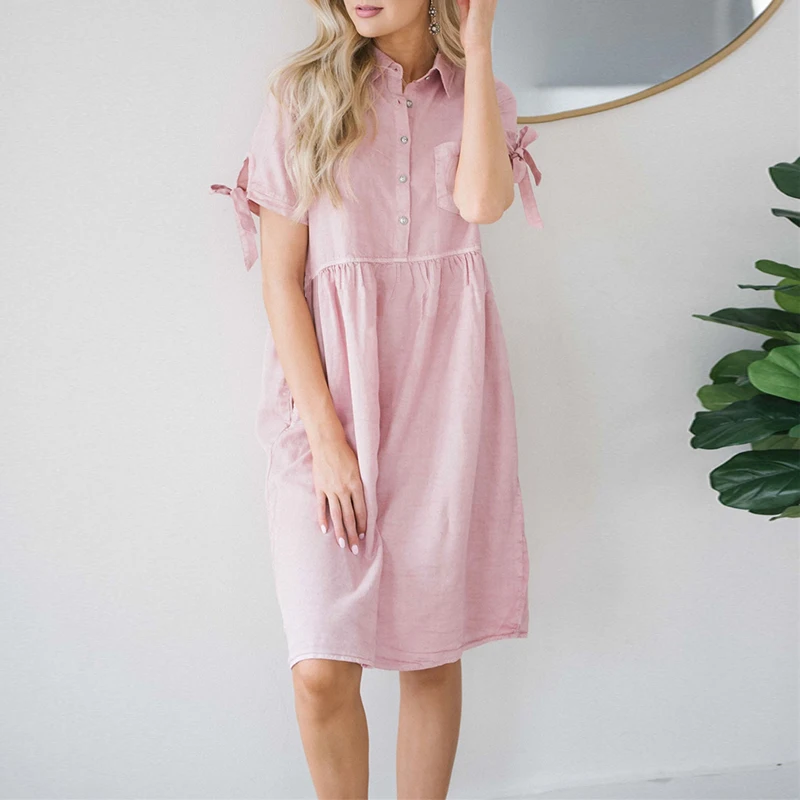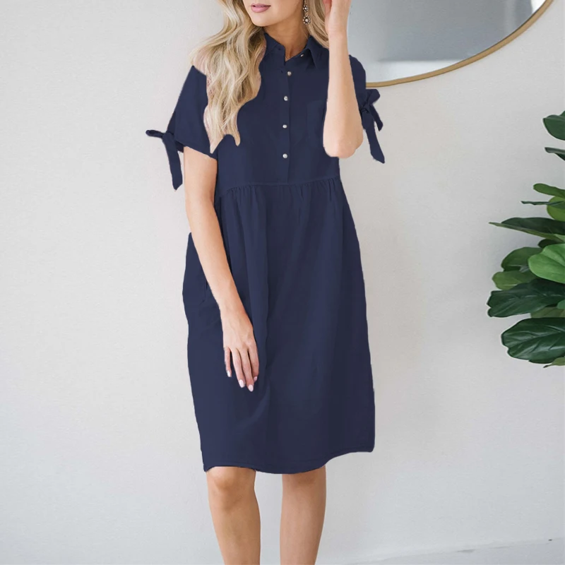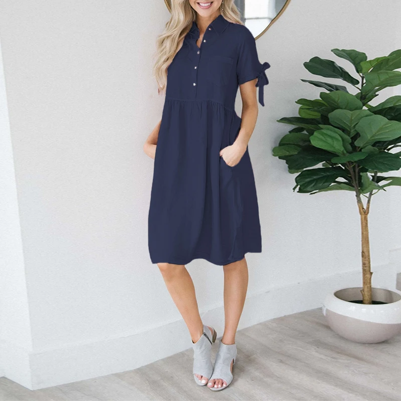 VONDA Women Cotton Dress 2018 Summer Casual Loose Vintage High Waist Short Sleeve Bow Solid Plus Size Knee-length Vestidos 5XL