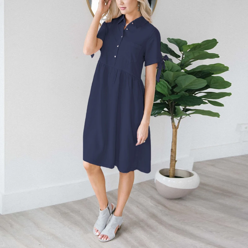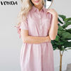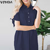 VONDA Women Cotton Dress 2018 Summer Casual Loose Vintage High Waist Short Sleeve Bow Solid Plus Size Knee-length Vestidos 5XL
