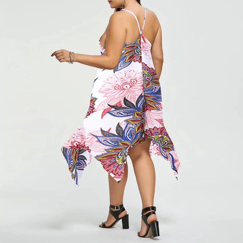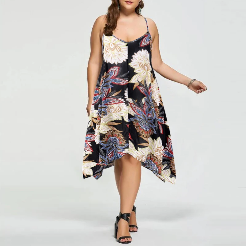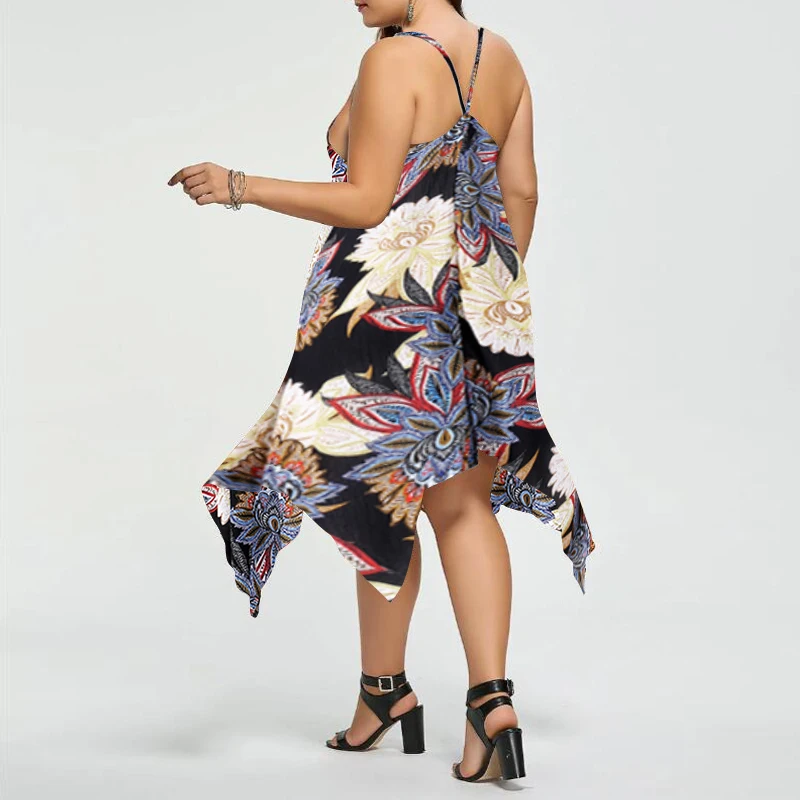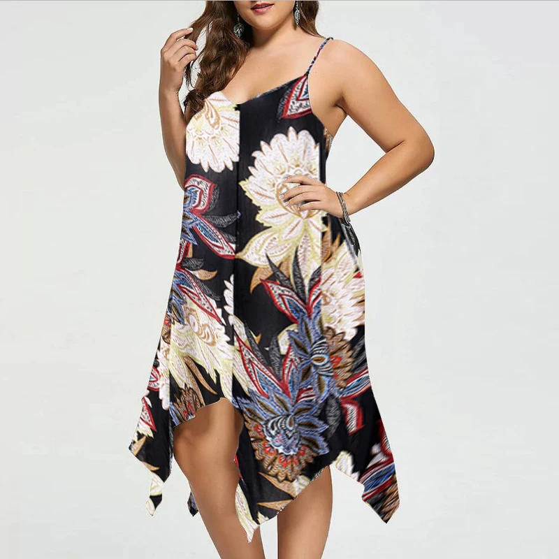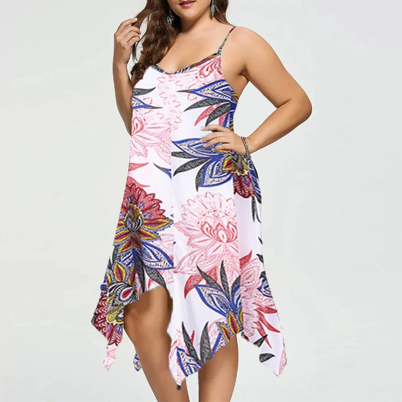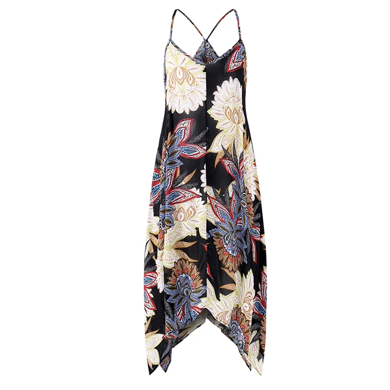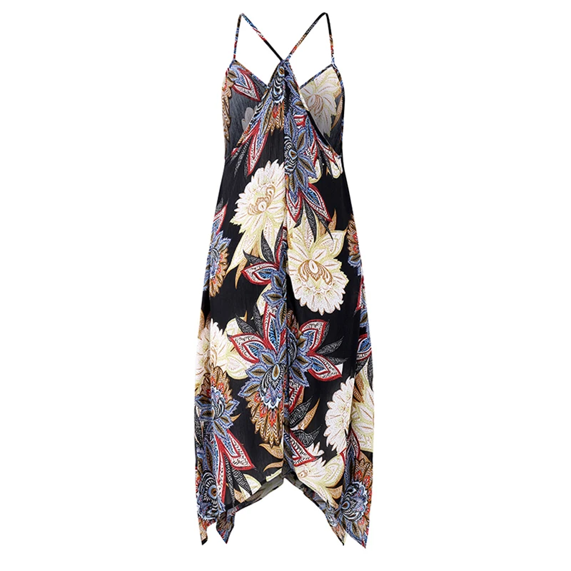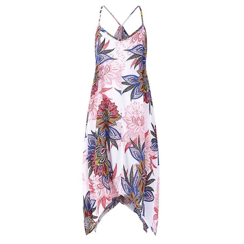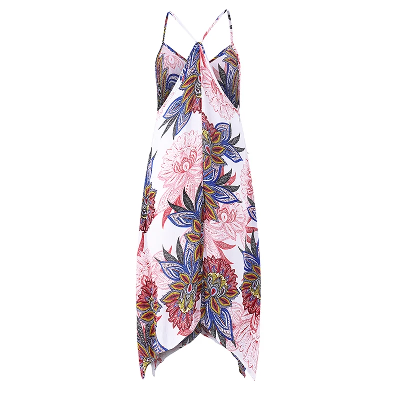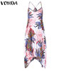 VONDA Women Sexy Party Floral Printed Dress 2018 Summer Casual V Neck Strapless Backless Asymmetric Plus Size Beach Vestidos 5XL