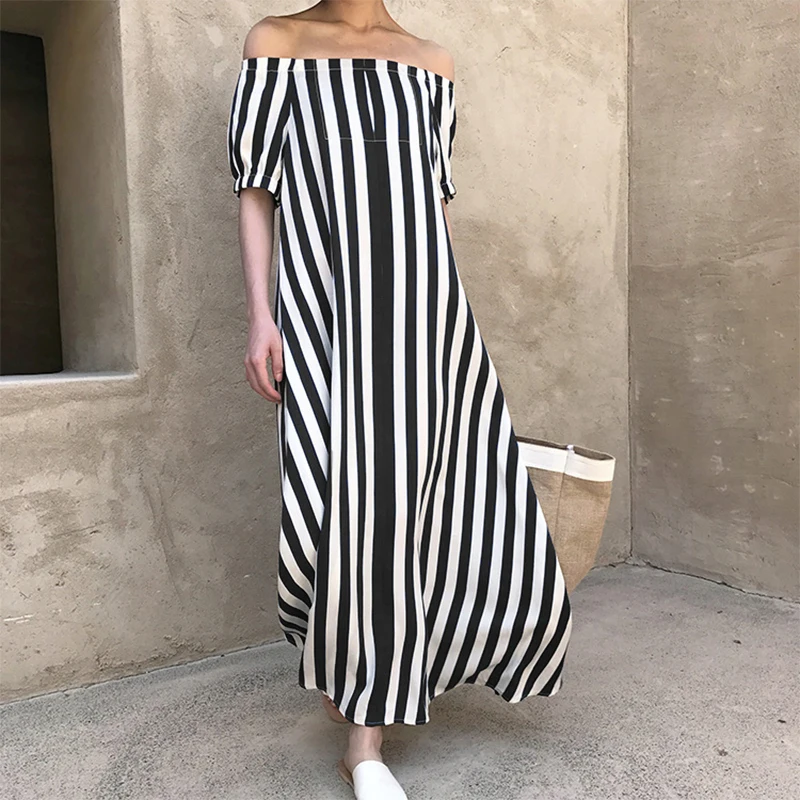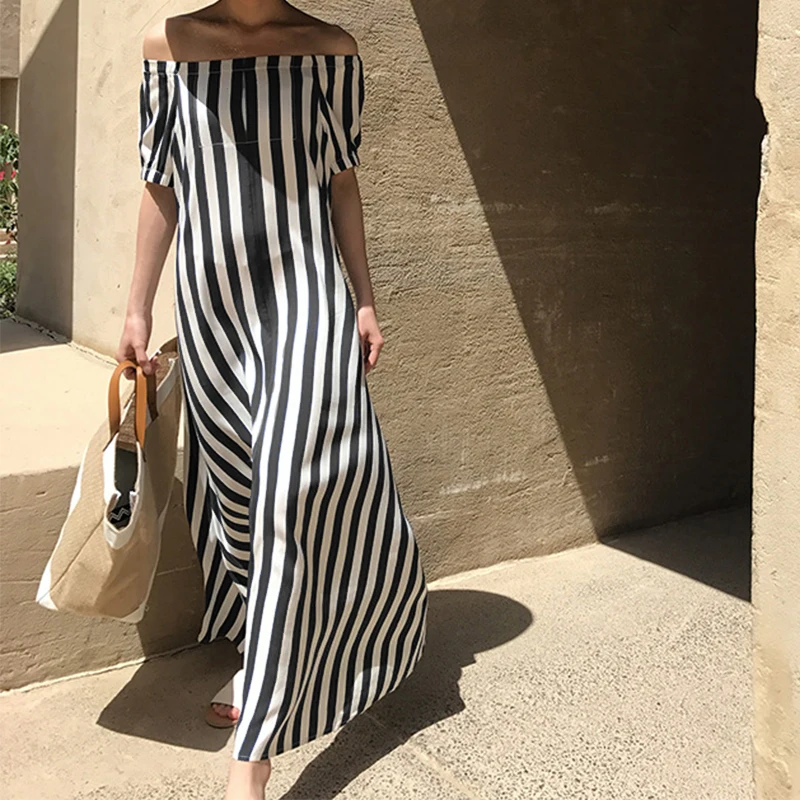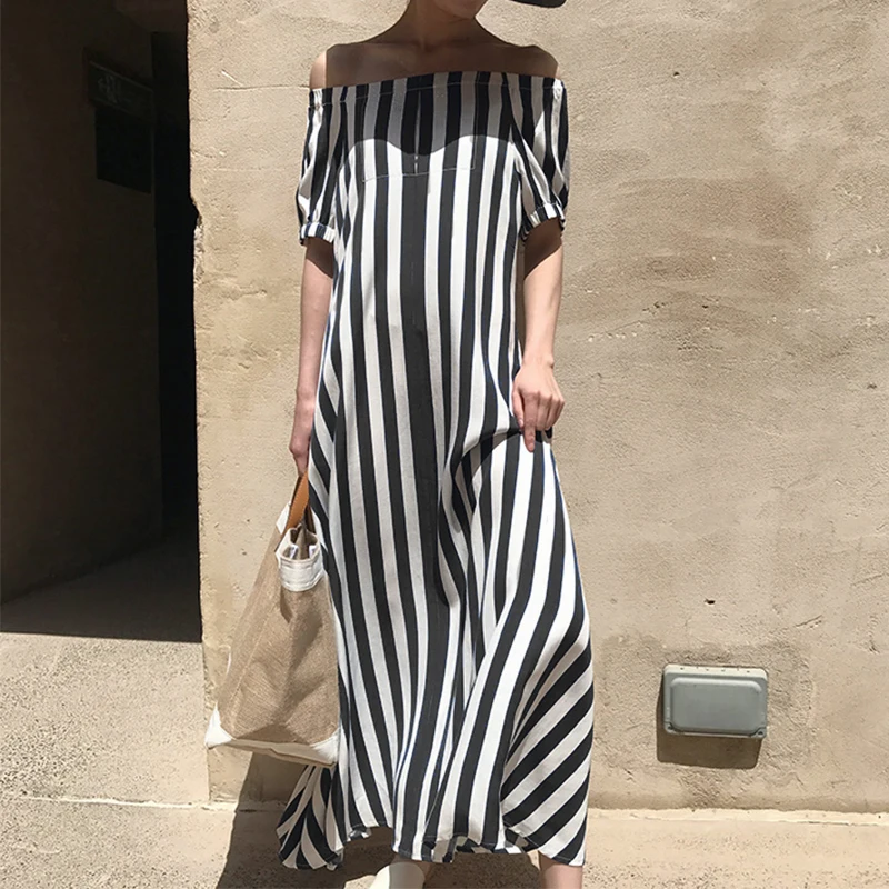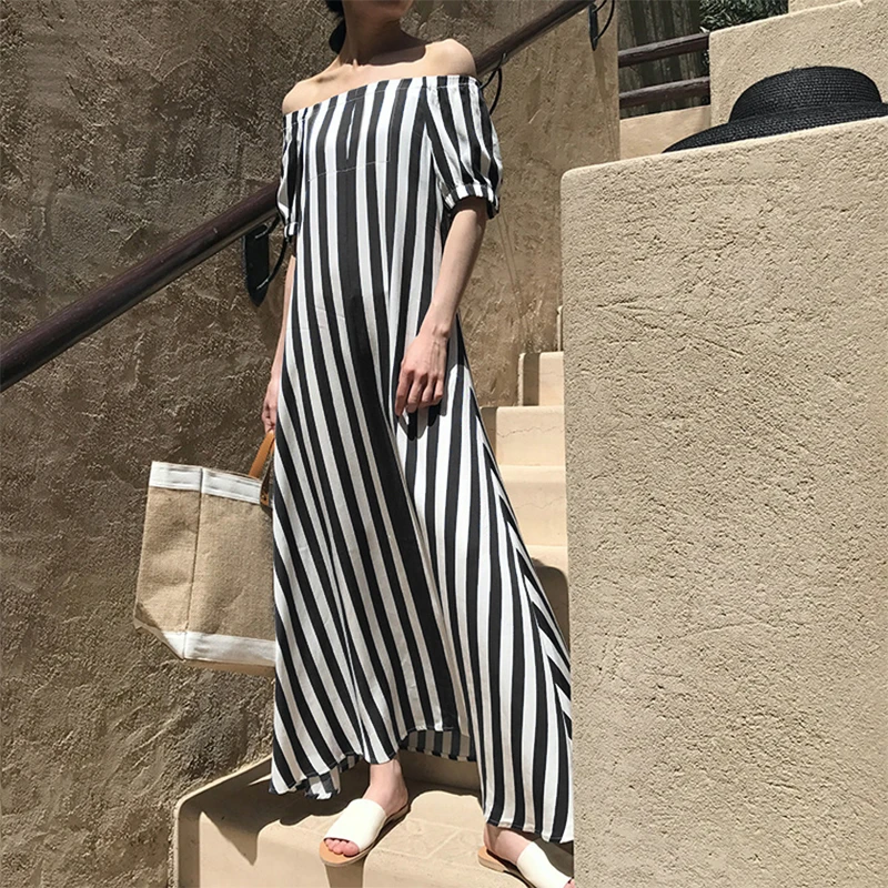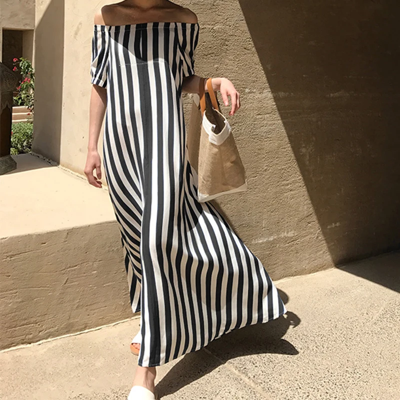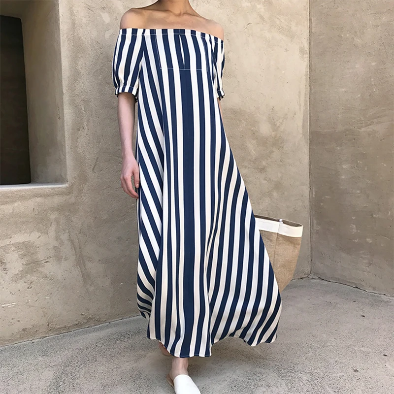 VONDA Women Striped Dress 2018 Summer Bohemian Casual Sexy Maxi Long Dresses Slash Neck Off Shoulder Vestidos Plus Size