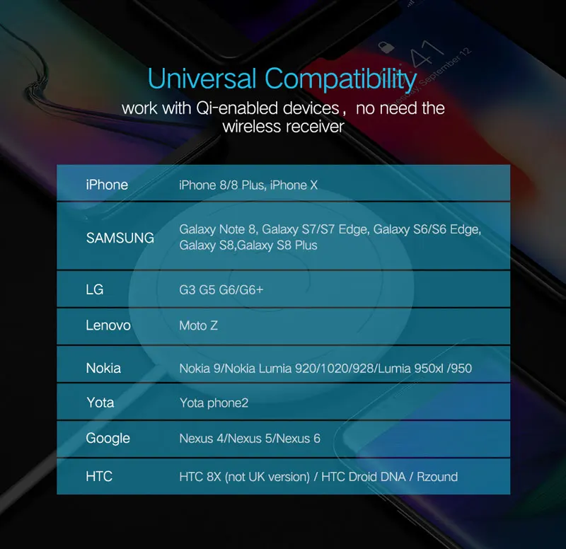 This product adopts wireless charging standard of WPC-Qi and For Applewatch protocol. It is suitable for wireless charging of mobile phones, digital, communication, GPRS, automobile, furniture, fire protection and waterproof products. Used for battery wireless charging or wireless power supply. Support for the latest Apple mobile phones and Samsung mobile wireless charger specifications. Apple can support fast charging 7.5W! For Samsung can support 10W fast charging! Also suit for Apple Watch three generations, two generations of standards, compatible generation.