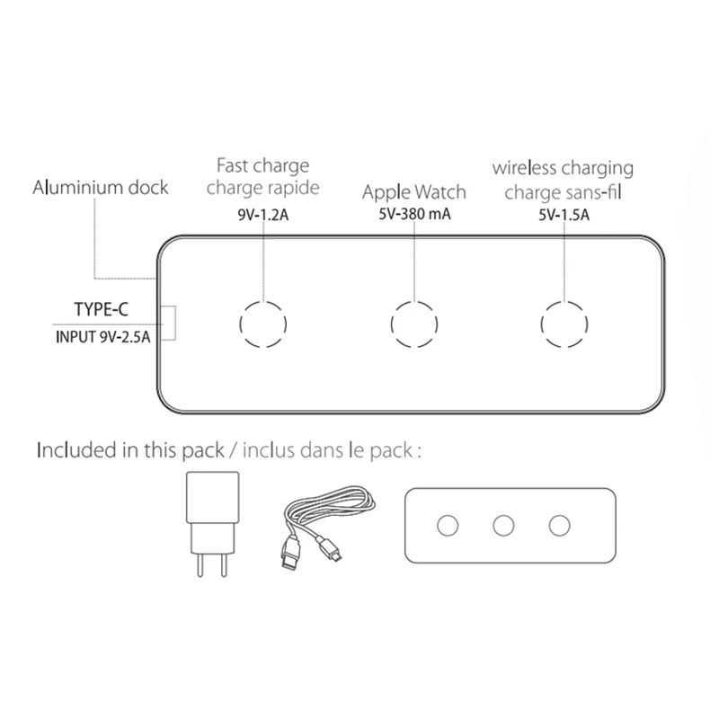 Function : fast wireless charger + for apple watch charger