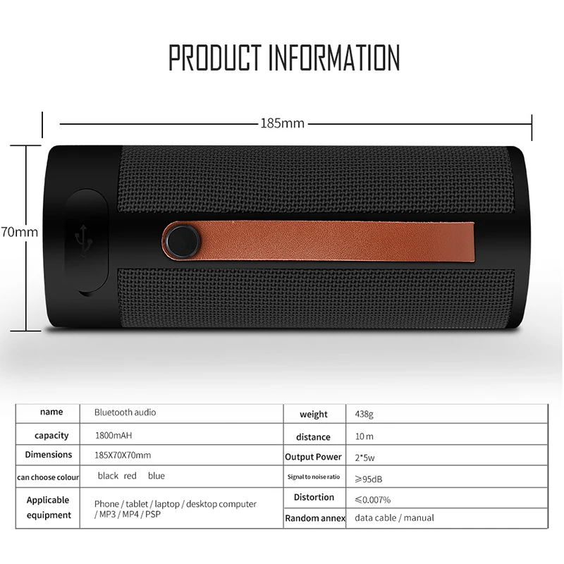 VRURC Portable Wireless Bluetooth Speaker Stereo 10W Super Bass Outdoor Waterproof Loudspeaker With Mic Support TF