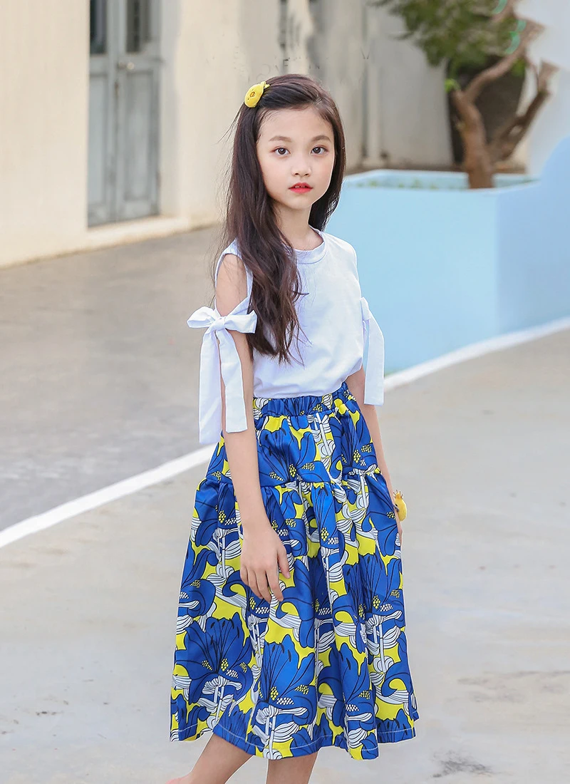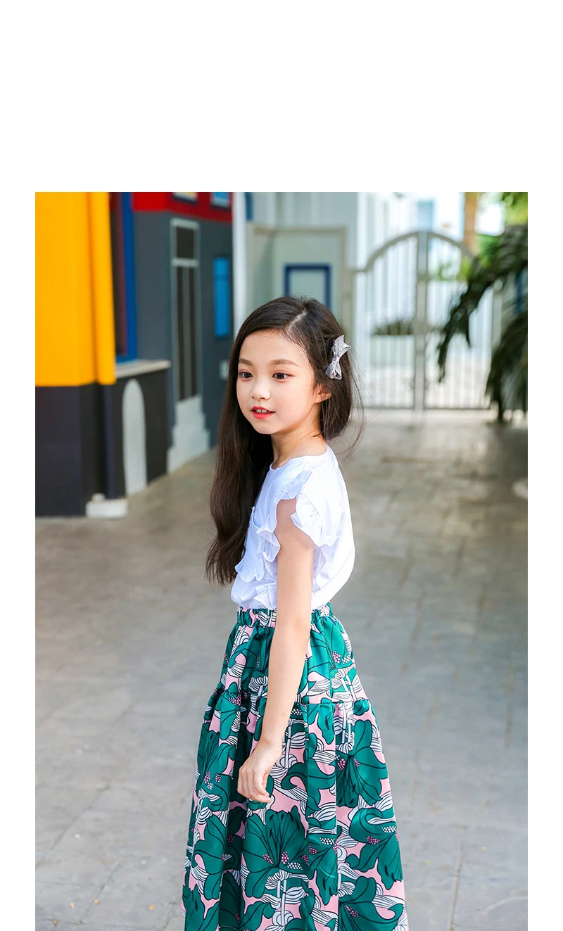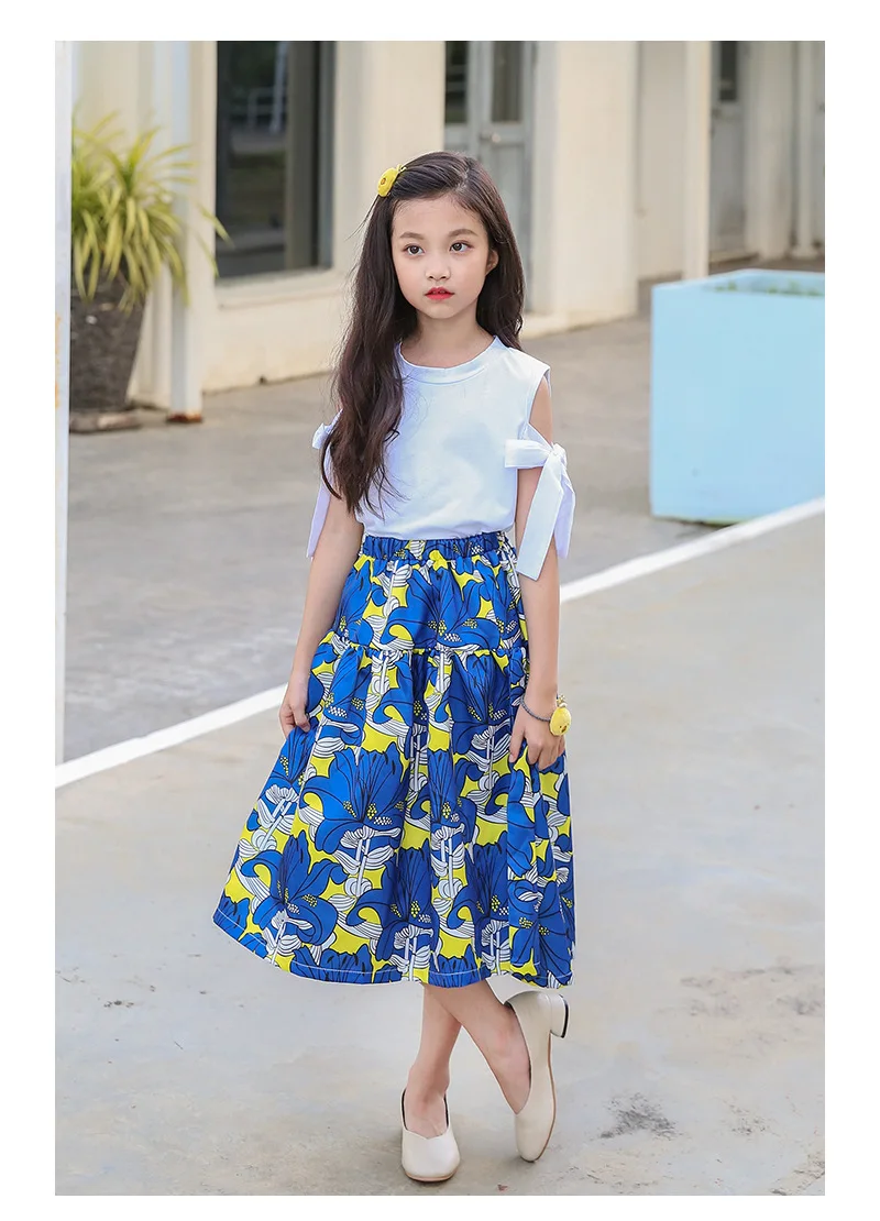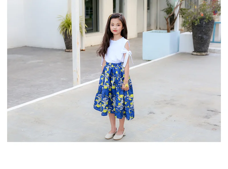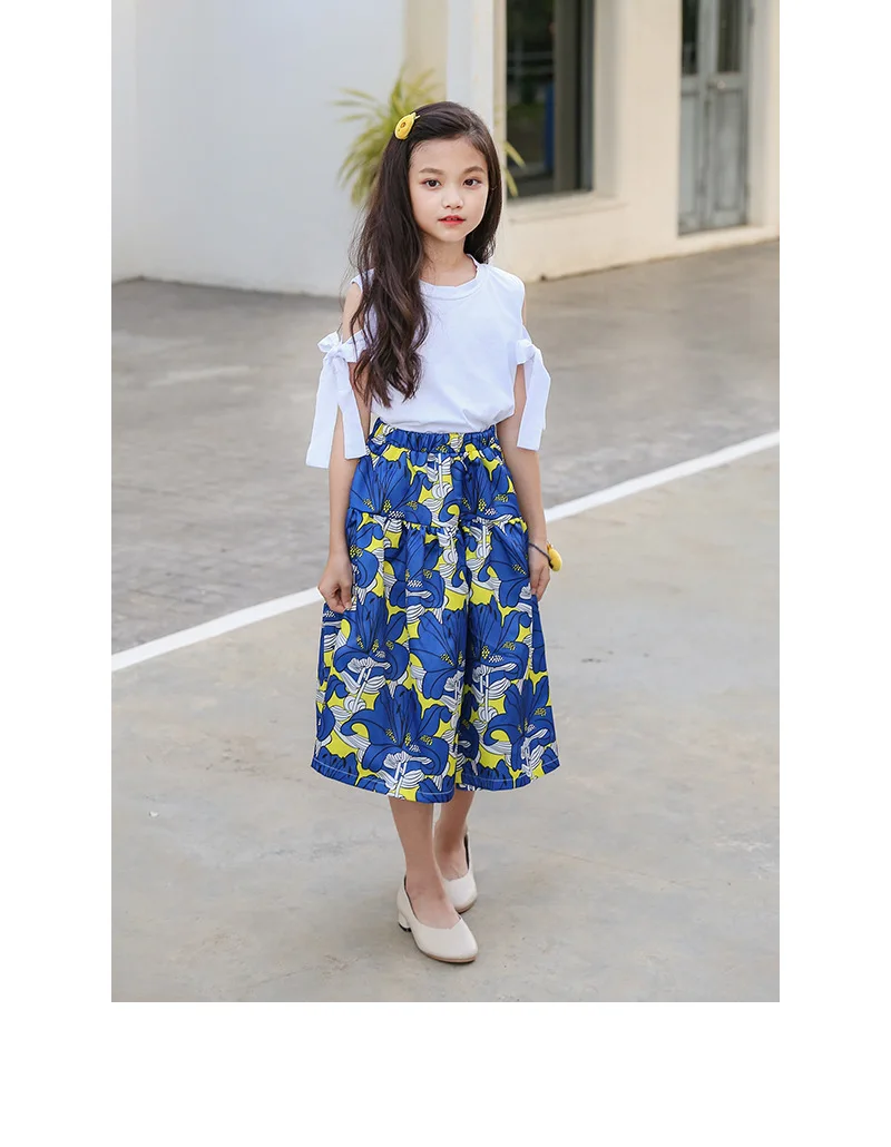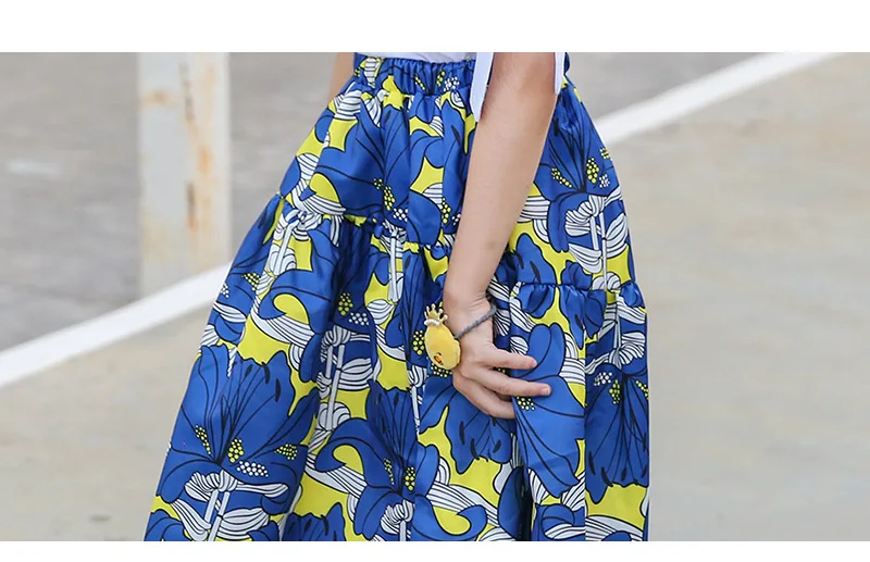 VYU Children Skirt Girls Skirt 2018 Summer Floral Printed Skirt Long Elastic High Waist Pleated Skirts New Arrival Kids Clothes