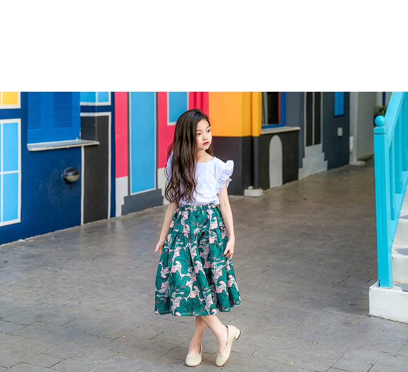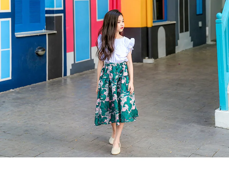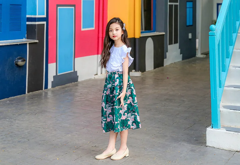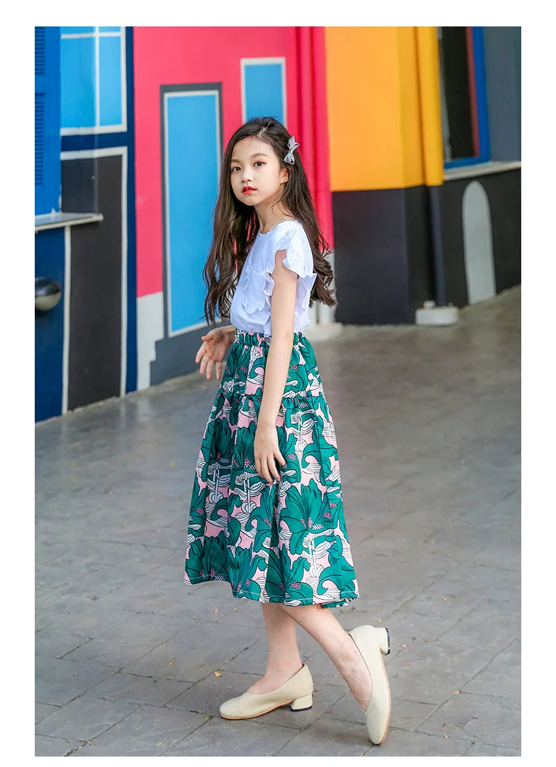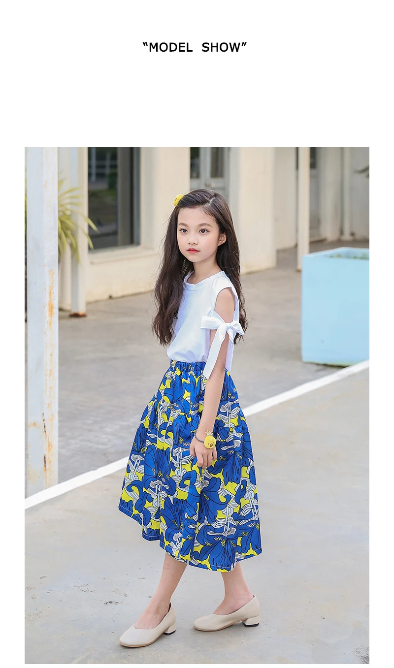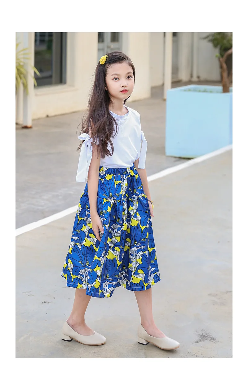 VYU Children Skirt Girls Skirt 2018 Summer Floral Printed Skirt Long Elastic High Waist Pleated Skirts New Arrival Kids Clothes