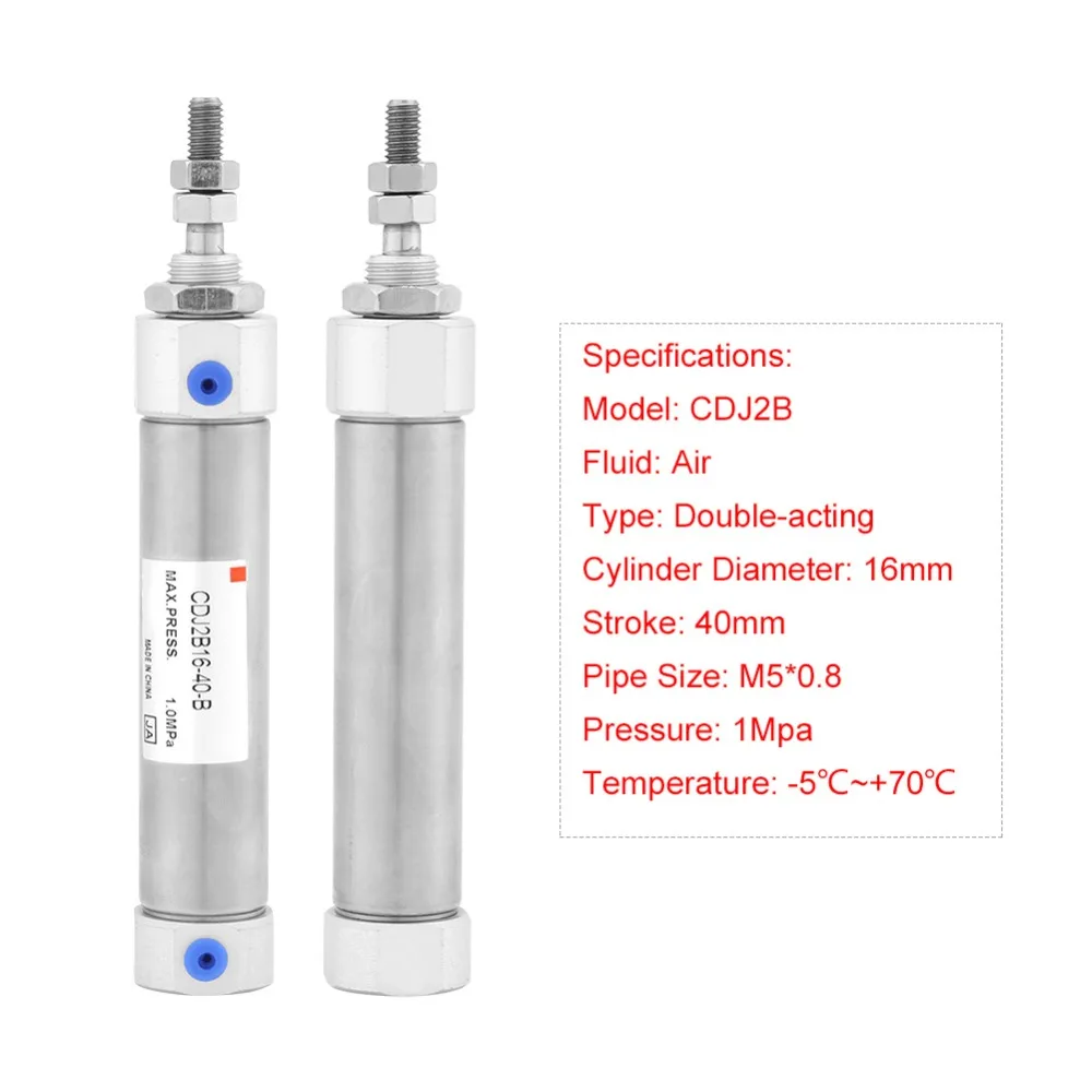 WALFRONT Double-acting Mini Pneumatic Cylinder CDJ2B 16mm Diameter 40mm Stroke Air Cylinder Stainless Steel Pneumatic Tools