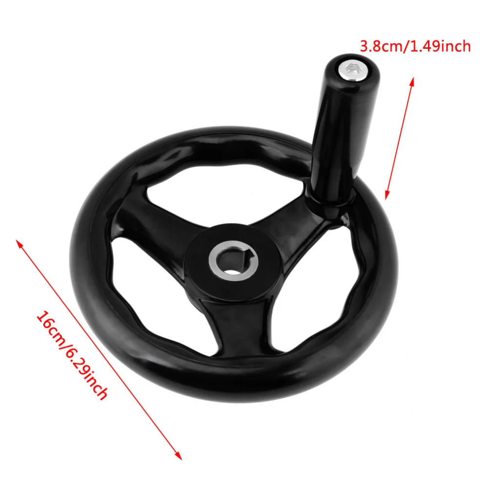 This 3 spoke hand wheel is made of high quality material, durable for use. The outer diameter is 16cm / 6.2inch. Suitable for most machine tool.