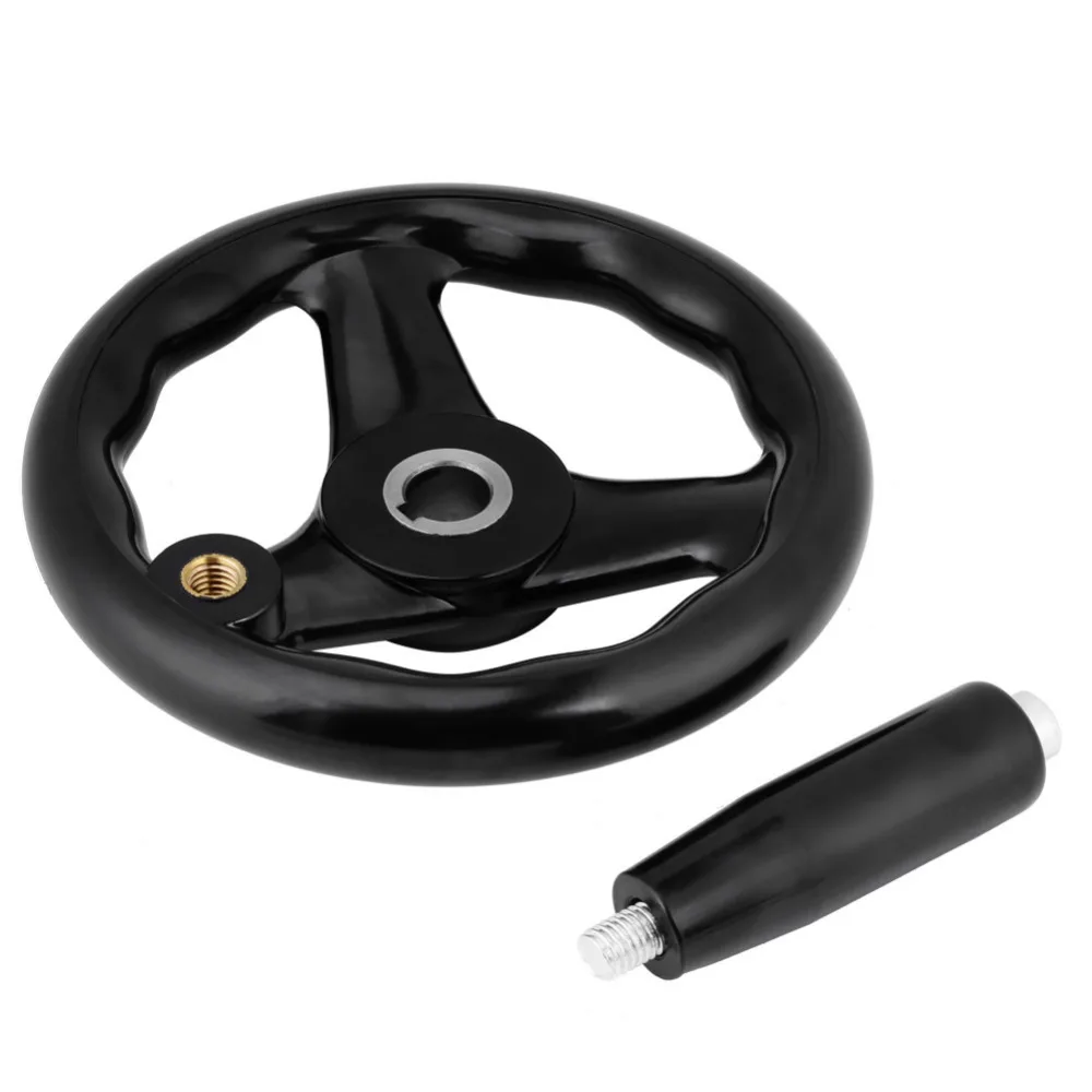 WALFRONT Machine Tool Hand Wheel Bakelite 3 Spoke Round Black Hand Wheel Replacement 6.2″ Diameter Lathe Machine Handle