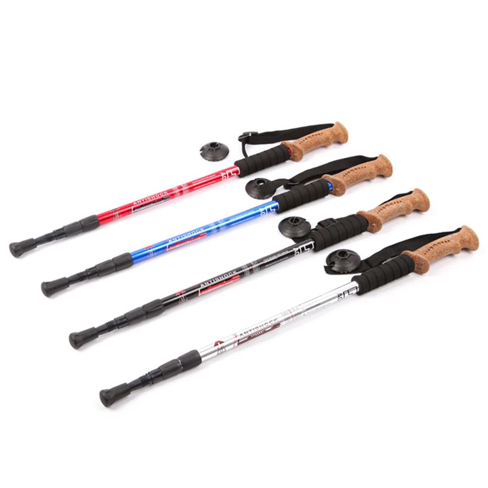 Adjustable length from approximately 60-135cm(23-53in) Anti-slip handle, very comfortable to hold Anti-shock spring mechanism reduces strains on hands and wrist Durable & adjustable wrist strap provides a safer, more secure grip Tungsten steel tip with removable rubber ferrule, protect the hiking stick Made of aviation 6061 aluminum alloy, strong and urltra-light, convenient to carry A necessary tool for outdoor activities like hiking, mountaineering, traveling, etc. Specifications: