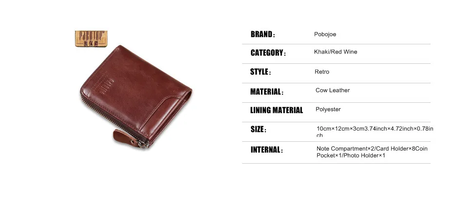 ●100% natural leather. ●The brand logo is made using a pressing process and survives with the wallet. ●Photo Holder:7cm×4.5cm. ●Passcard Pocket: Can be used to place driver’s license, passport, ID card. |