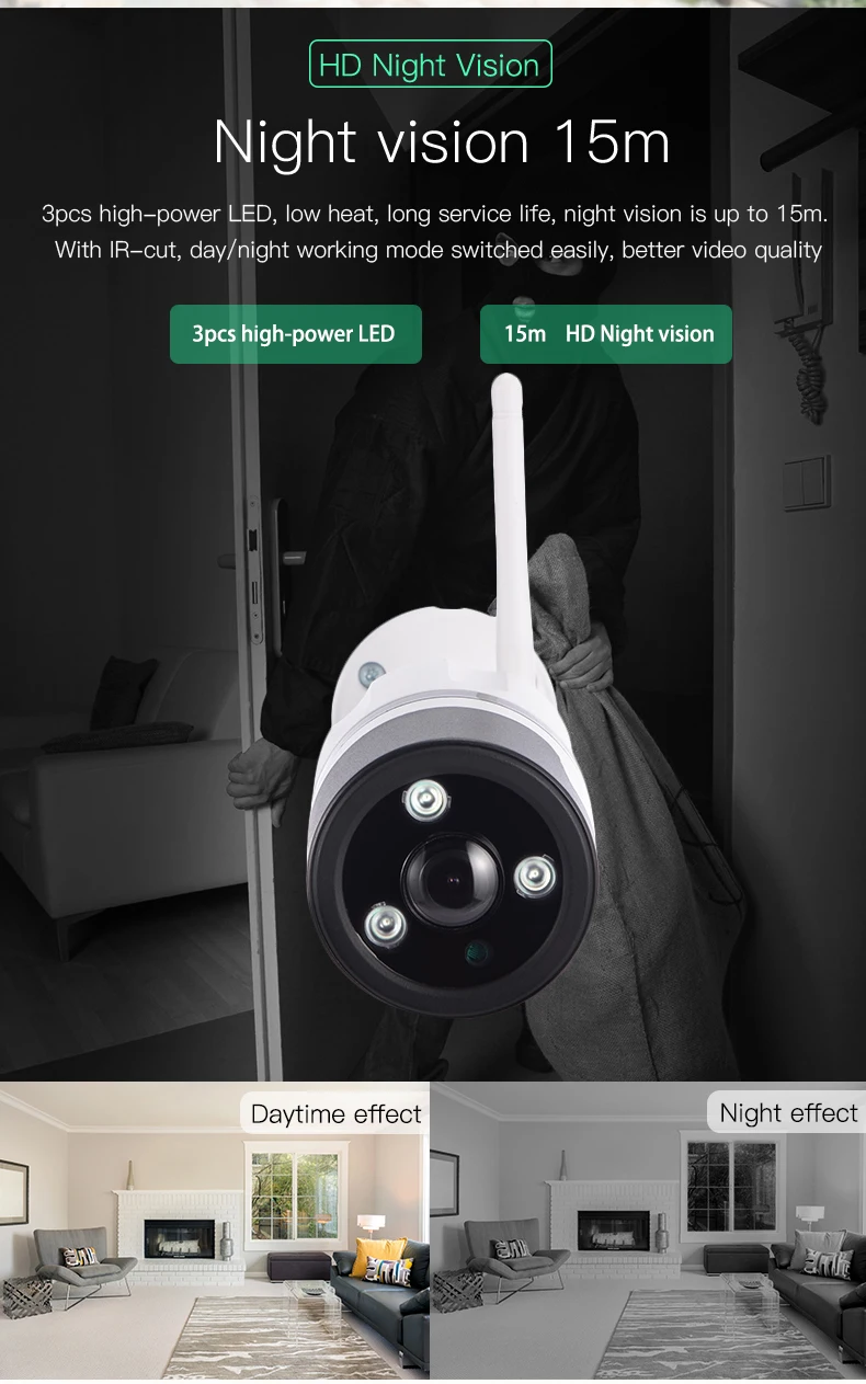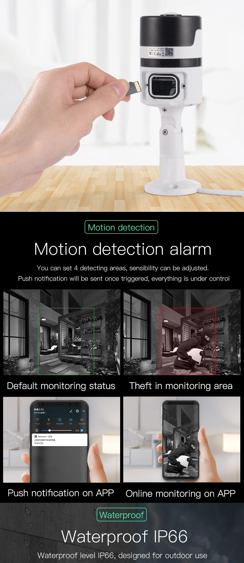 Support Email photo alert, Push alert notifications, Snapshot and record to FTP or TF card |
