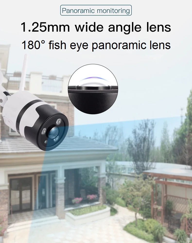 Lens: 1.25 mm, 180° Panoramic fish eye lens, 3x digital zoom |
