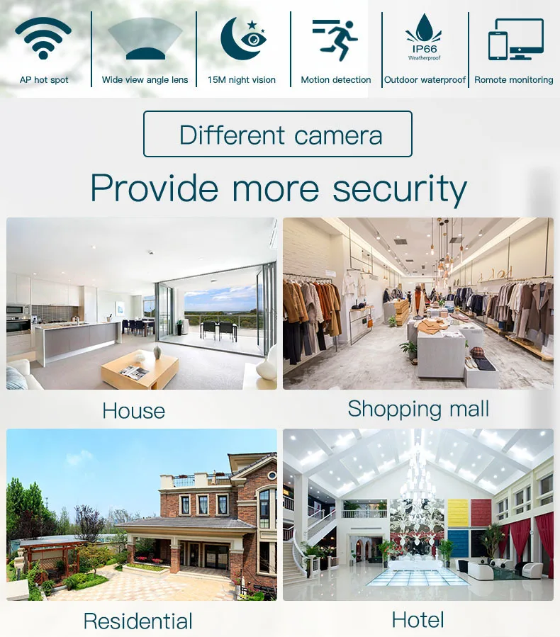 Support remote surveillance, record, alarm, WiFi setting etc. |