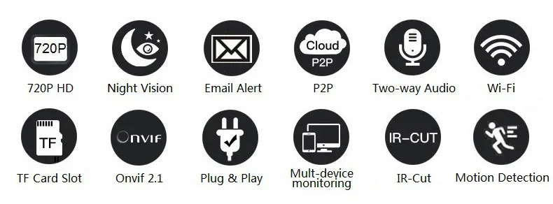 Support Email photo alert, Push alert notifications, Snapshot and record to FTP or TF card |