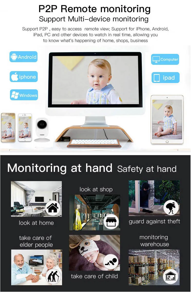 Support 12 language remote surveillance, record, alarm, WiFi setting etc. |