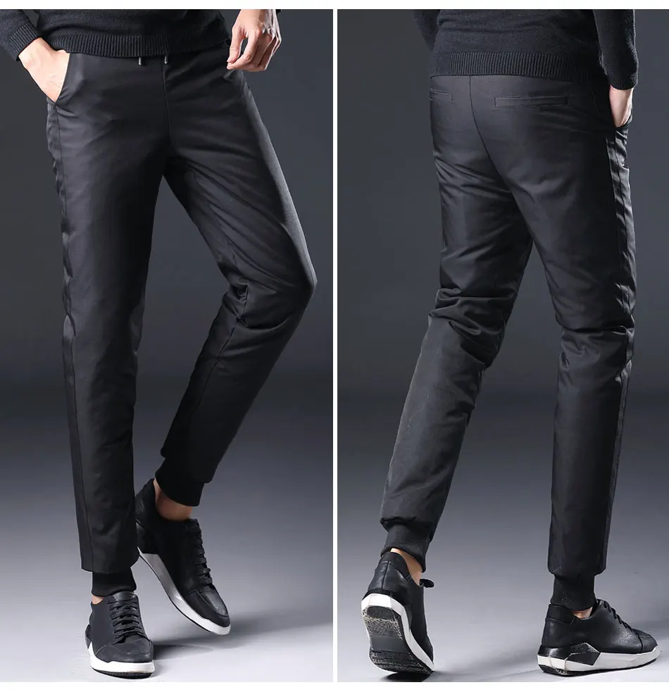 Warm Duck Down Pants Men Winter Thick Trousers Male Casual Plus Size Mens Down Pants High Waist Slim Sweatpants Men Work Pant