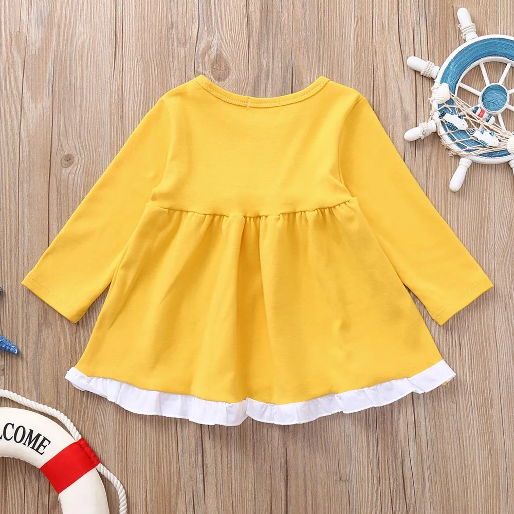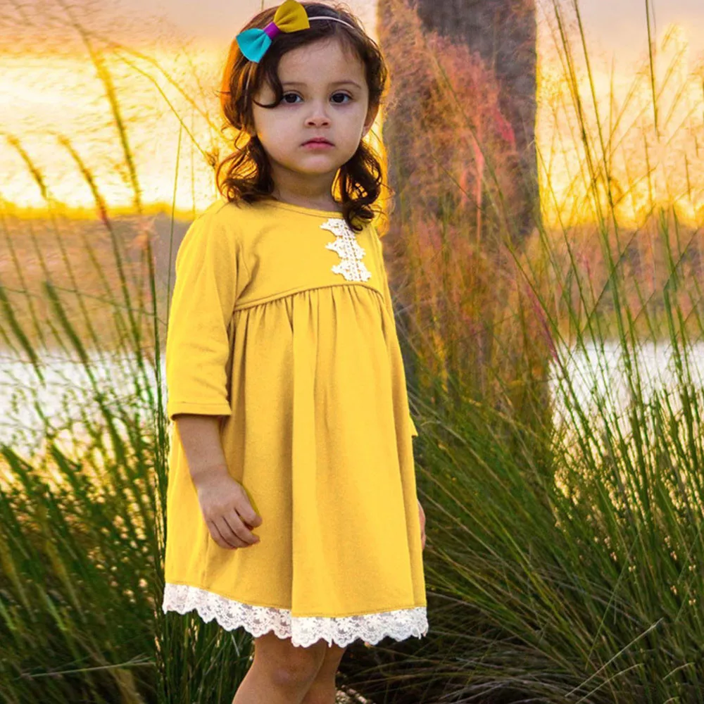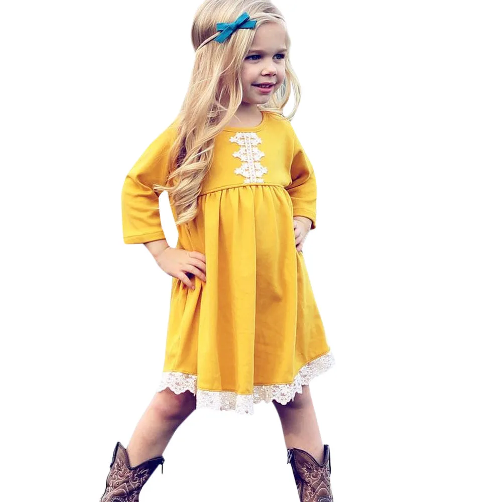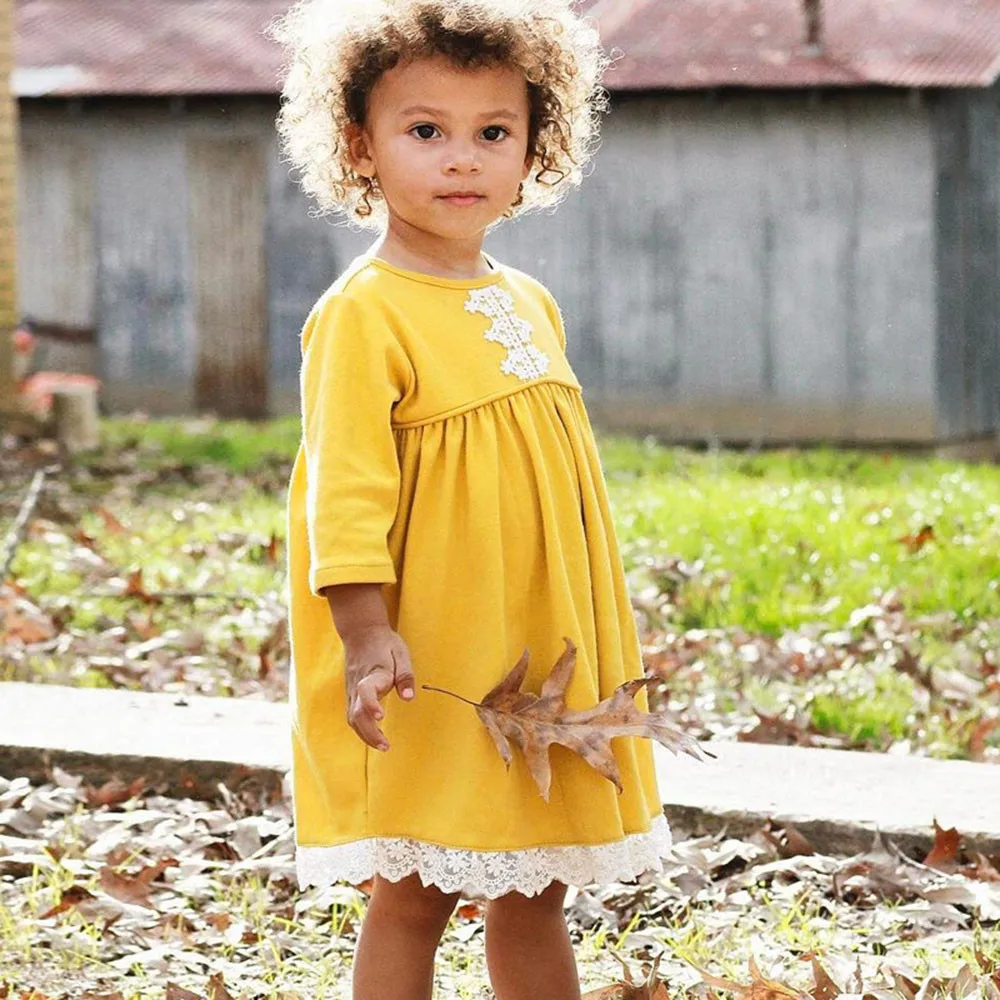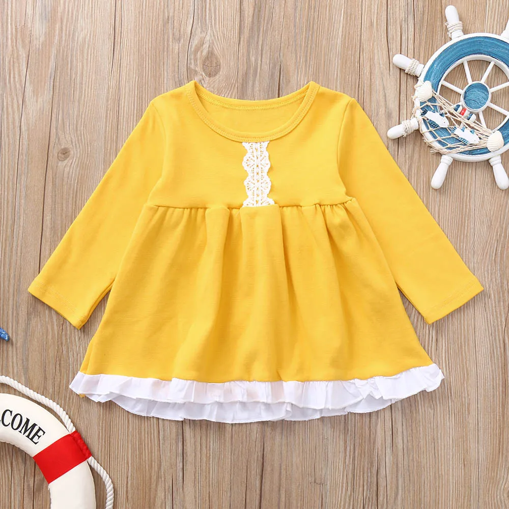 Toddler Baby Girls Long Sleeves Solid Lace Kids Clothing Princess Dress