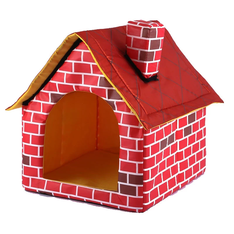 Washable & Removable Red Brick Pet Dog House For Small Dogs Puppy Kennel With Mat Warm And Cozy Cat Kitten Bed Pet Products