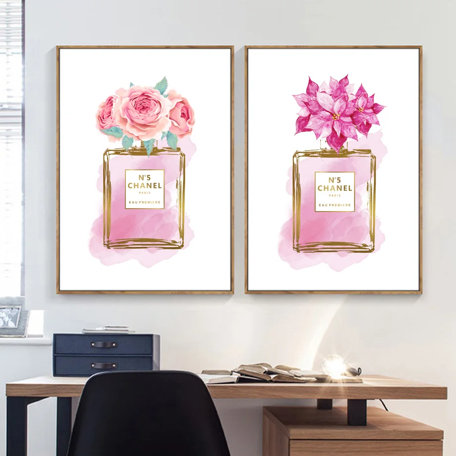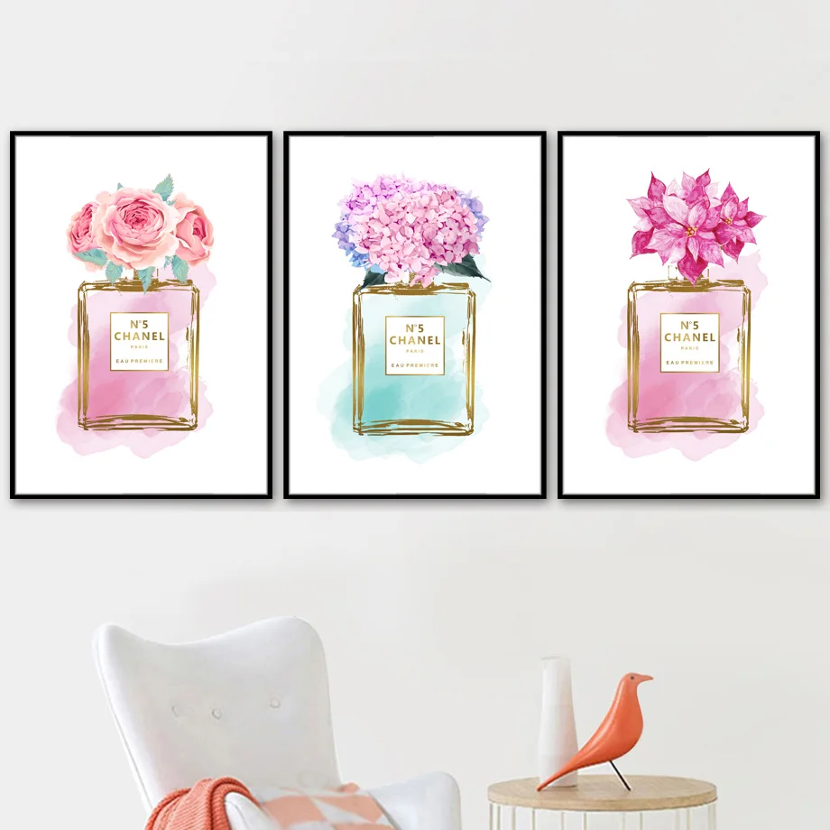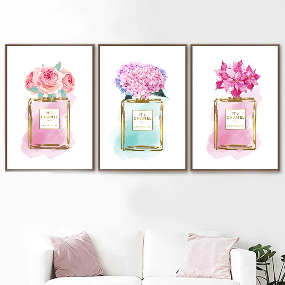 Watercolor Cherry Peony Flower Perfume Wall Art Canvas Painting Nordic Posters And Prints Salon Wall Pictures For Bedroom Decor